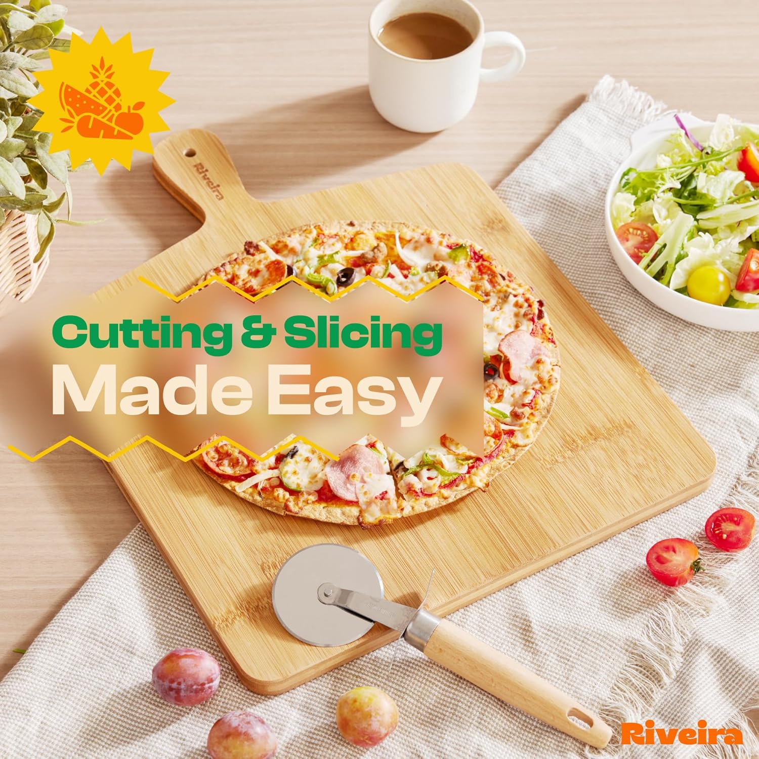 - Premium Crafted Bamboo — Take a detour from traditional kitchen aesthetics with this brown bamboo wood board crafted from 100% natural bamboo. Beyond being an unconventional and eco-friendly choice, the chopping board wood proudly showcases the environment friendly and organic bamboo. This wood cutting boards for kitchen counter adds an unexpected touch of confidence and style to your once-orderly culinary space. Riviera's wooden chopping boards for kitchen will be there for many years to come.