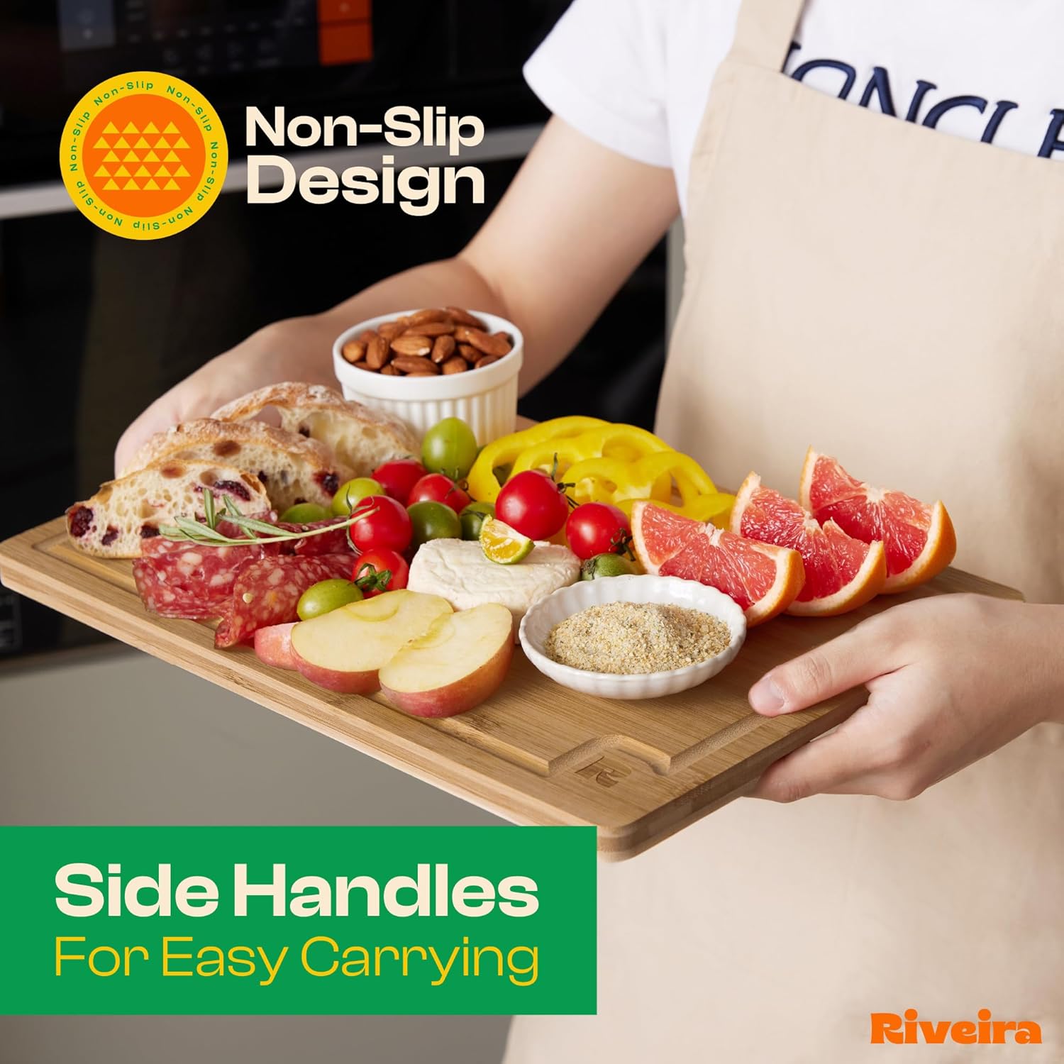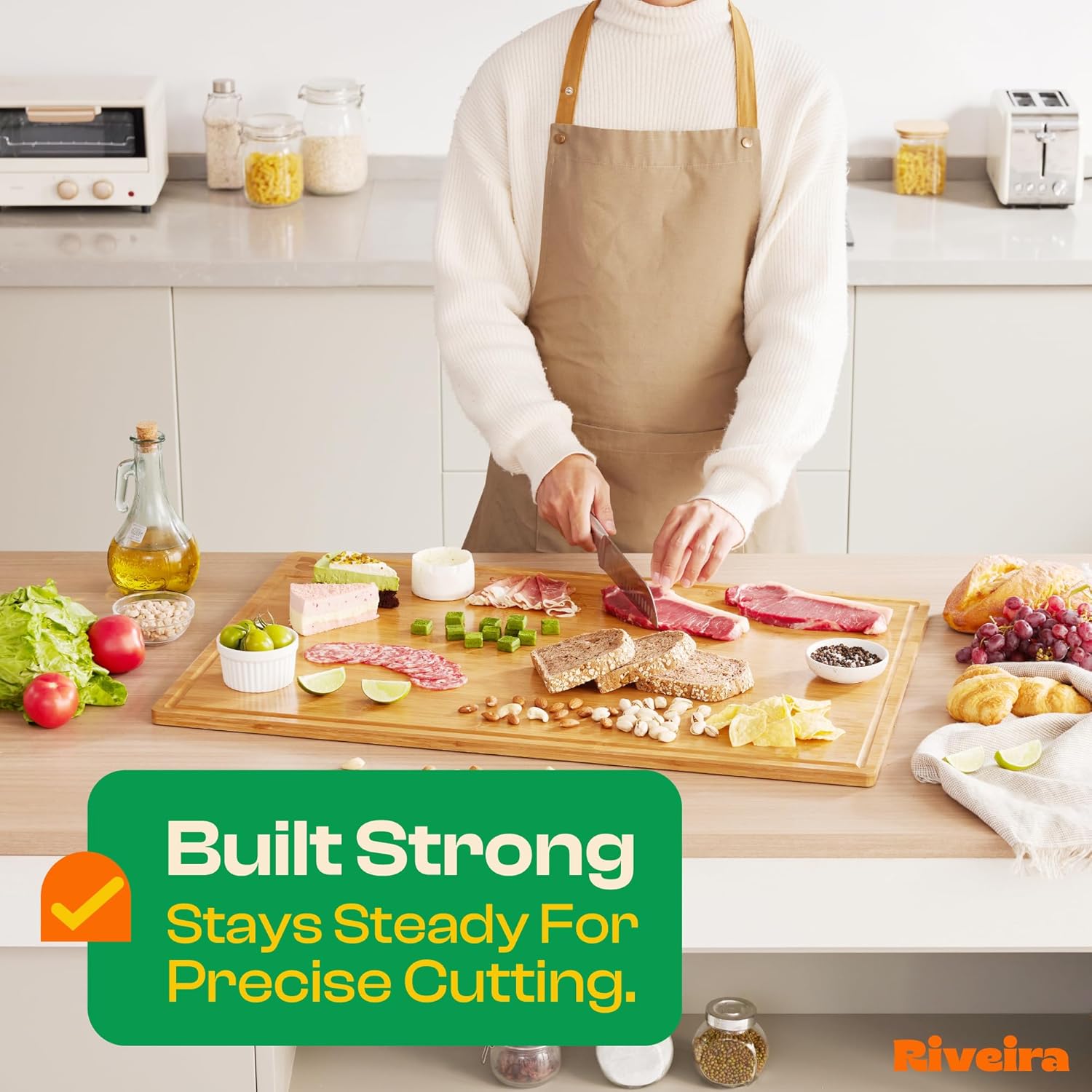 Riveira Brown Bamboo Wood Cutting Board – Gourmet Bamboo Grandeur: 20 x 30 Wooden Cutting Board – Wooden Cutting Boards For Kitchen Decorative – Innovative Juice Grooves Wooden Chopping Board