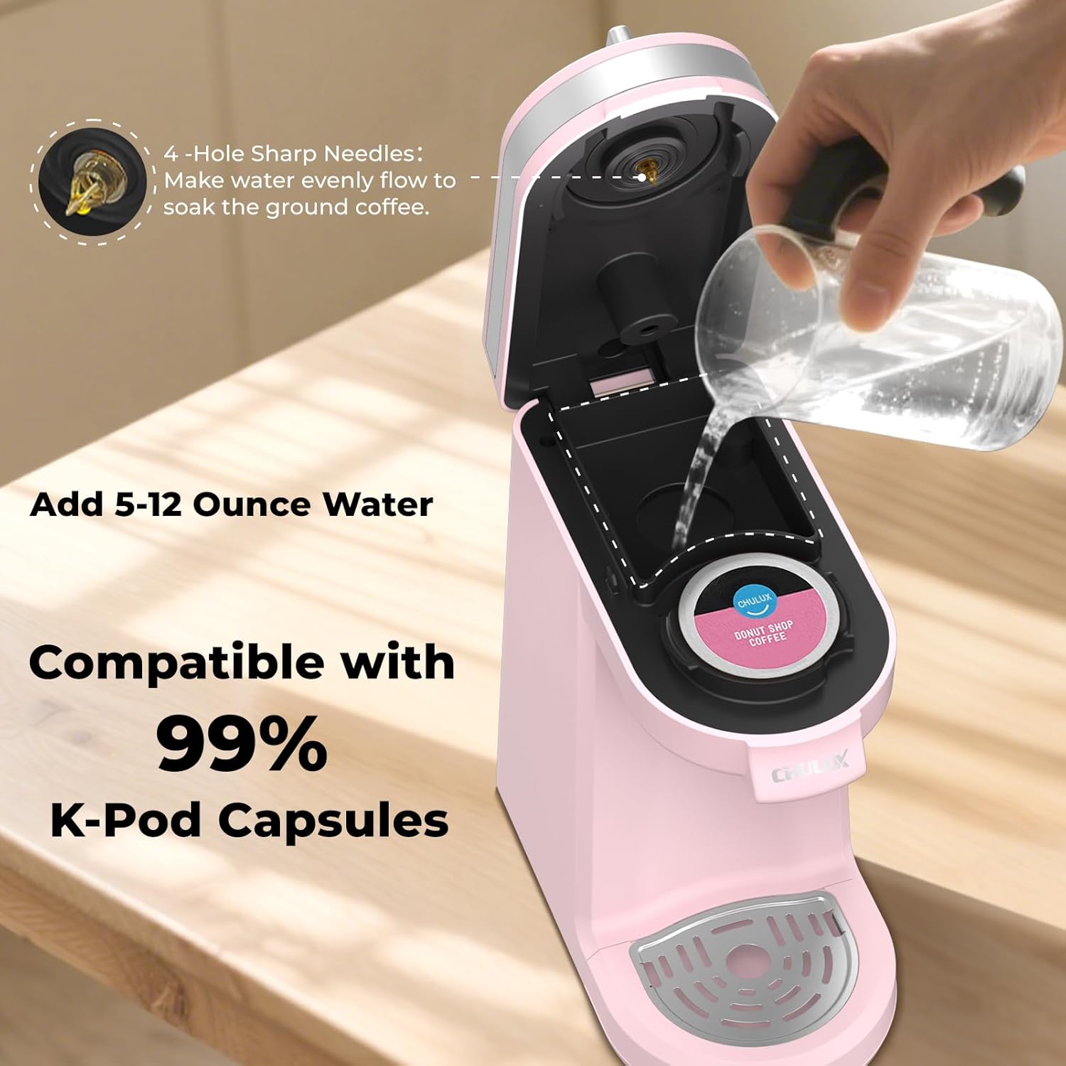 CHULUX Mini Coffee Maker for K Capsule, Single Serve Coffee Maker for One Cup Americano, Lightweight Pod Coffee Machine, Dusty Rose