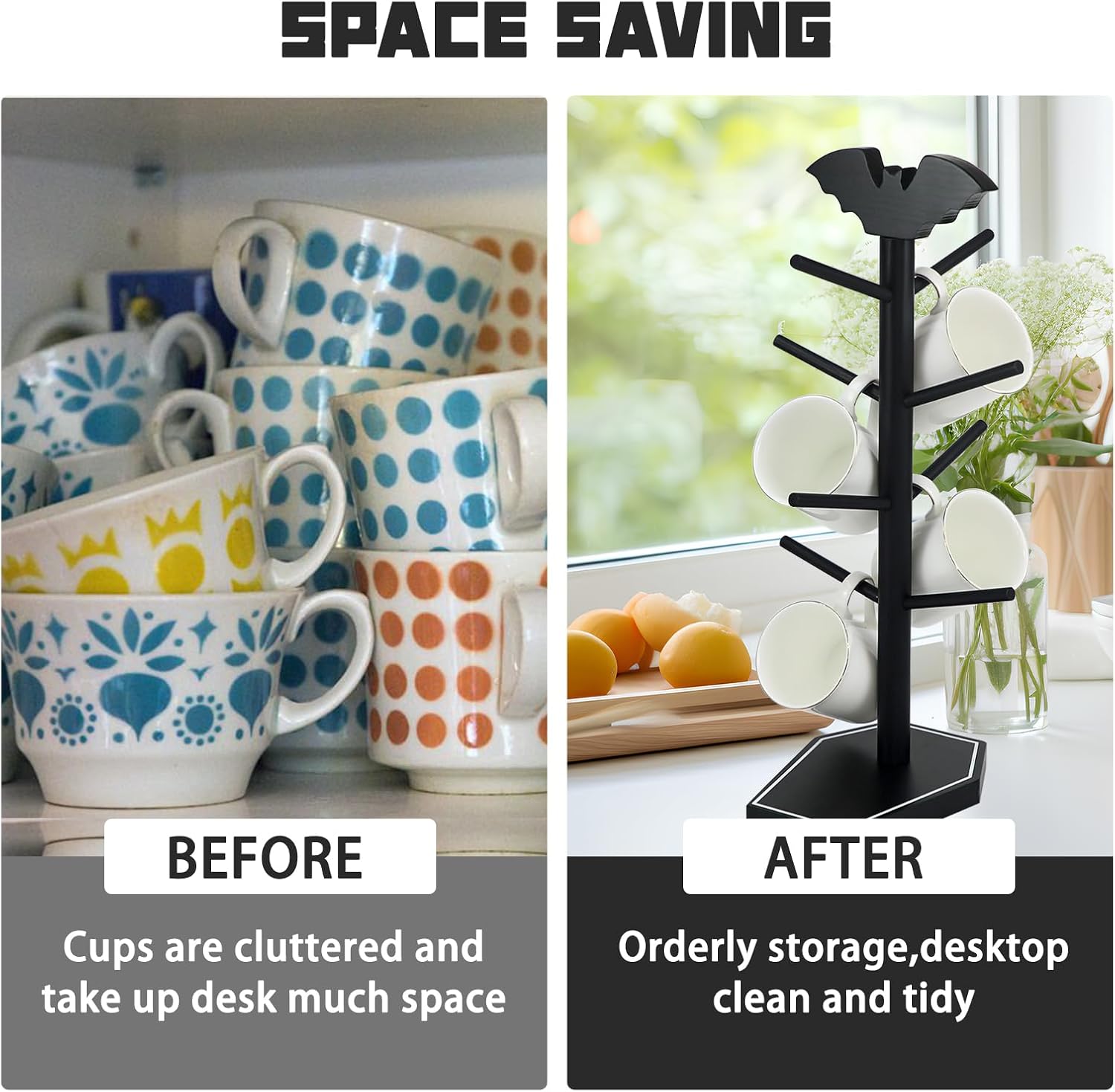 - 【Large Capacity】: This coffee mug stand can hold up to 8 mugs or tea cups, suitable for most sizes and different shapes of cups, store your cups neatly, keep the desktop clean and tidy, and save space