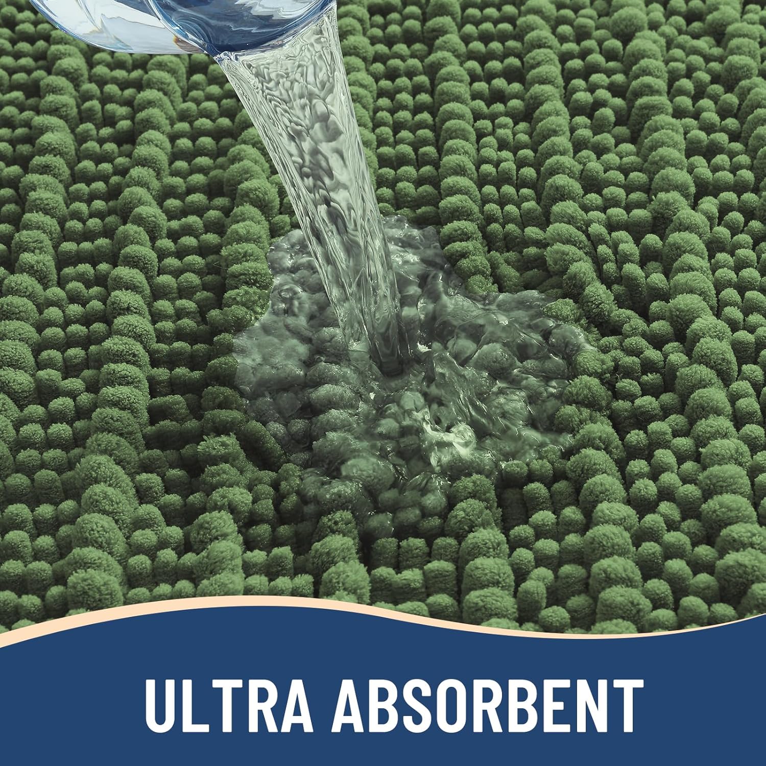 Arotive Luxury Chenille Bathroom Rug Mat, Extra Soft Thick Absorbent Shaggy Bath Rugs, Non-Slip Machine Wash Dry, Plush Bath Mats for Bathroom, Shower and Tub, 47x24, Olive Green