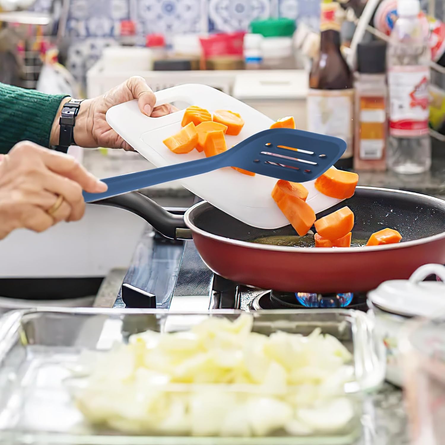 Silicone Kitchen Cooking Utensils Set: MOACC Heat Resistant 13inch Long Kitchen Gadgets, BPA Free Non Stick Rubber Cook Accessories For Food Prep, Frying, Serving, Basting (Dark Blue)