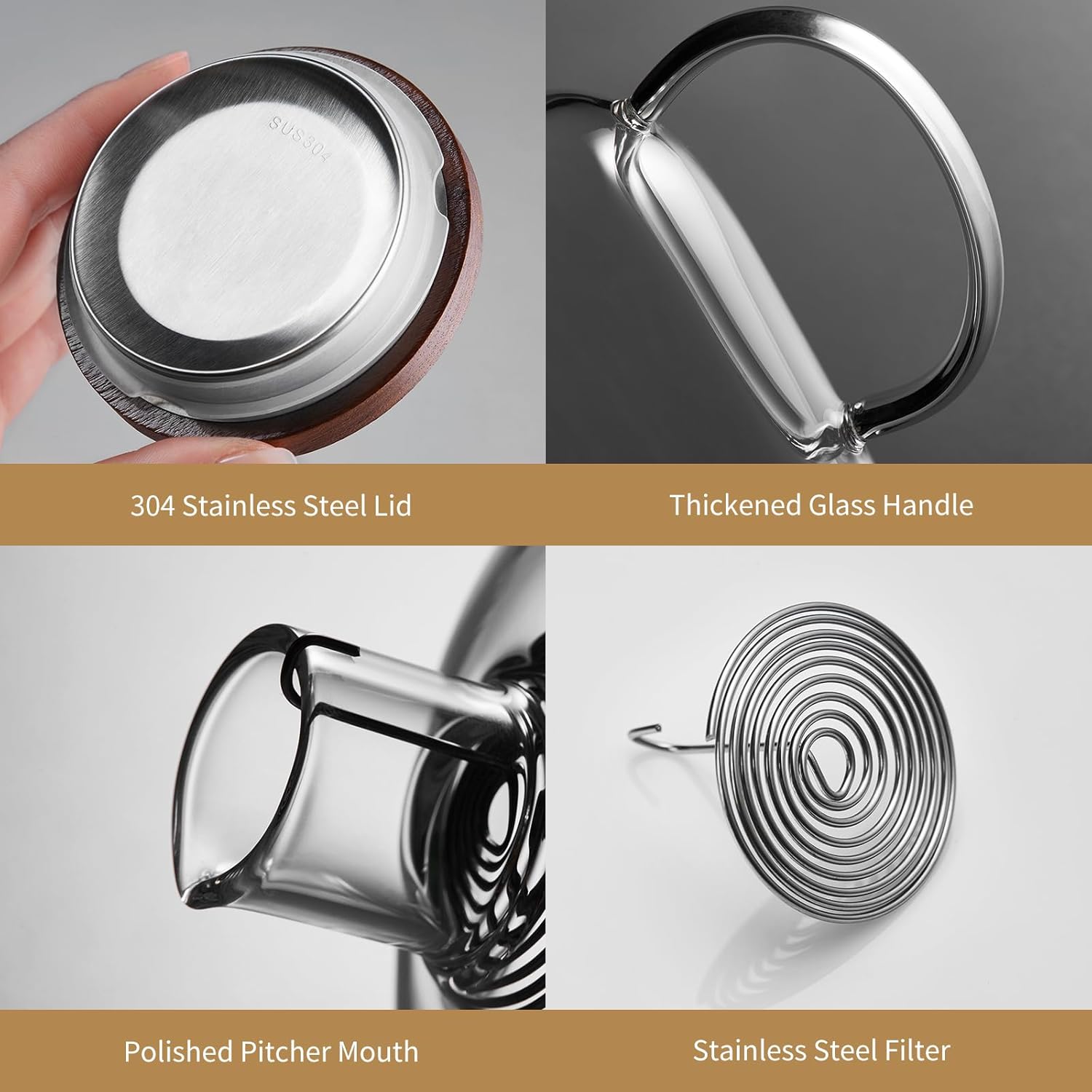 - Large Capacity for Versatile Use: The glass pitcher holds 1200ML/40OZ , which is exceptionally practical and versatile for parties or everyday use. Perfect for water, milk, iced tea, homemade lemonade or juice, sangria, coffee, wine and so on. The size and slim shape is great to fit into the fridge door.