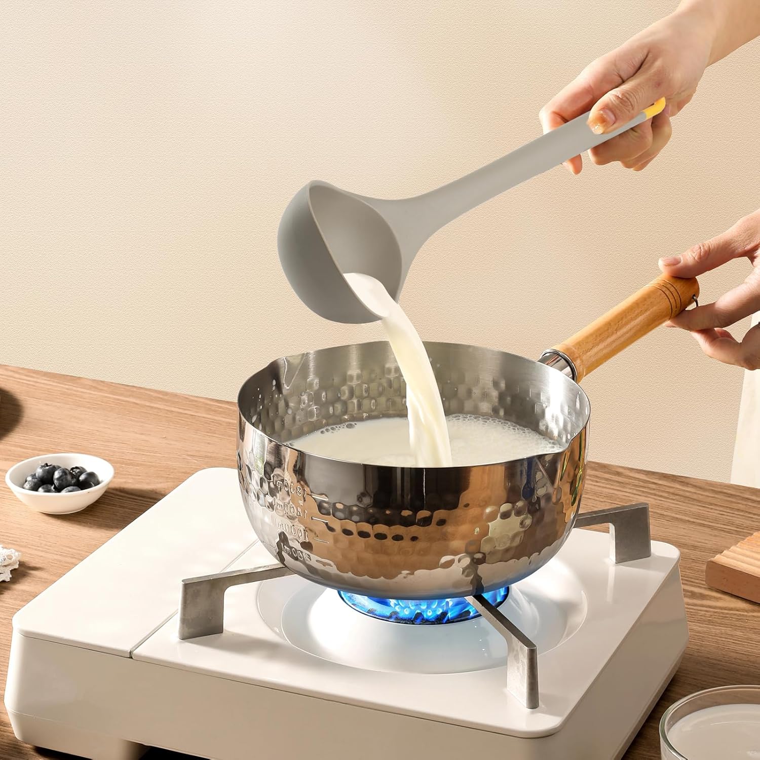 - LONG SEAMLESS INTEGRATED DESIGN - The sizes are about 13.6 inch in length and are perfect for most mixing, stirring, serving, basting needs. The handle is long enough for most large cookware without being too big to use at the table. Long length keeps your hand far from the heat.
