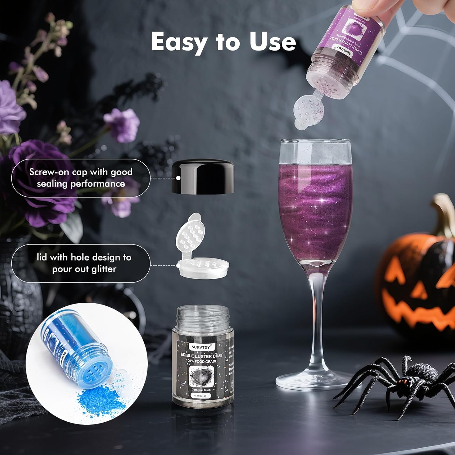 - Easy to Use with Shape Type Lid: No need for any skills, just sprinkle the glitter on food or drinks. We come with shape type lids that allow you to easily control the amount without the need for other tools.