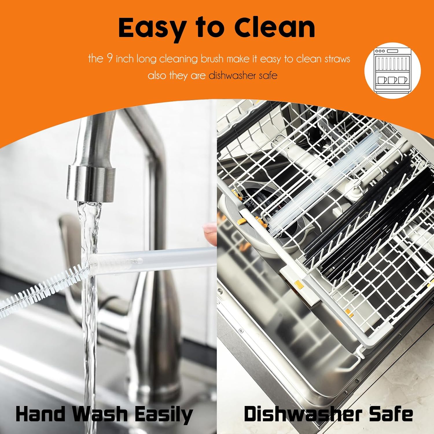 - 【Dishwasher Safe】Our durable straws are dishwasher safe, and the long enought straw brush help you clean the straws easily. Cleaning before the first use is recommended.