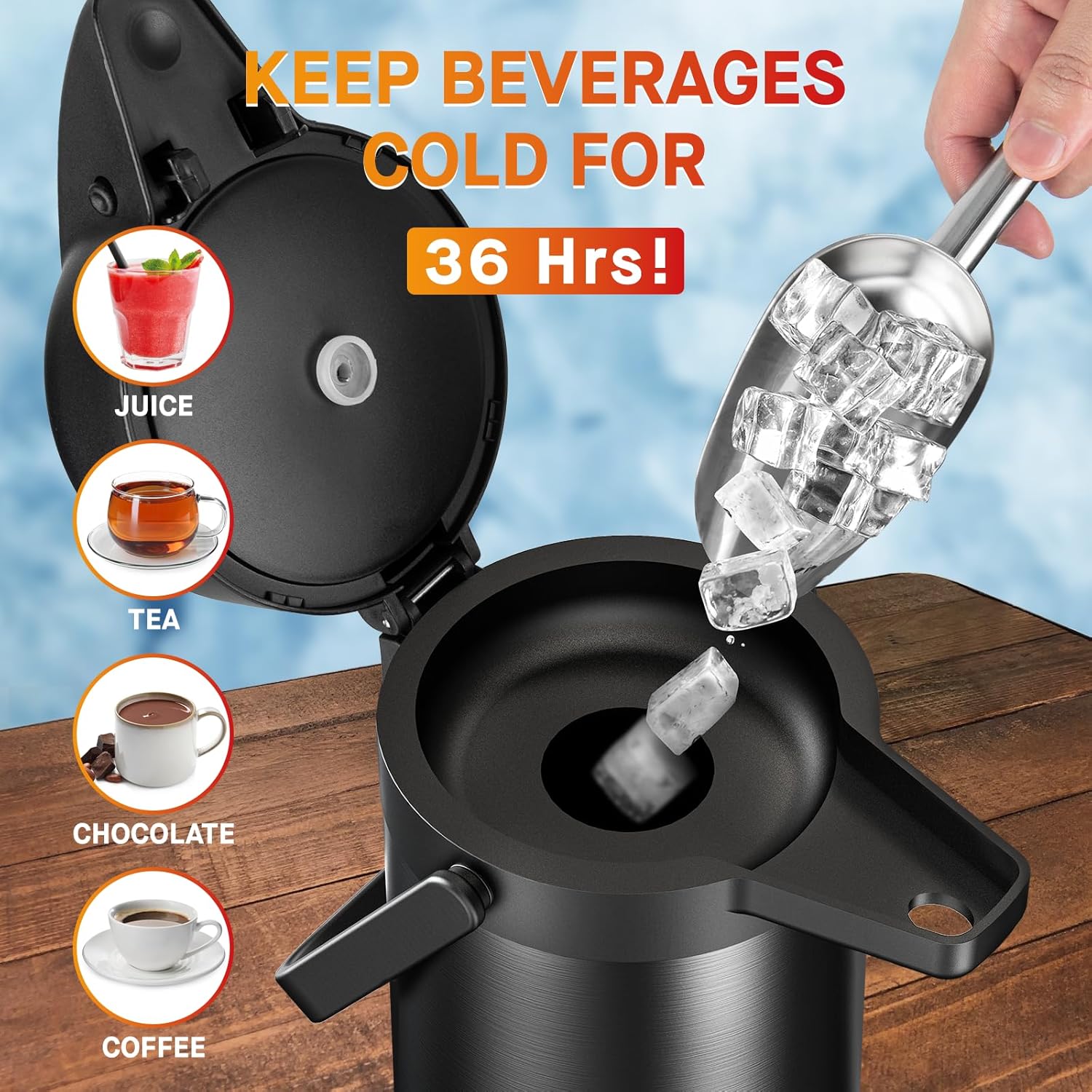 - DISPENSES EASILY AND QUICKLY: With the pump-action top design, this coffee dispenser with pump allows you to dispense your favorite beverage easily and safely with one press without lifting and tilting the entire airport, which greatly prevents the drinks from being overturned or leaked, and friendly to the elder and children.