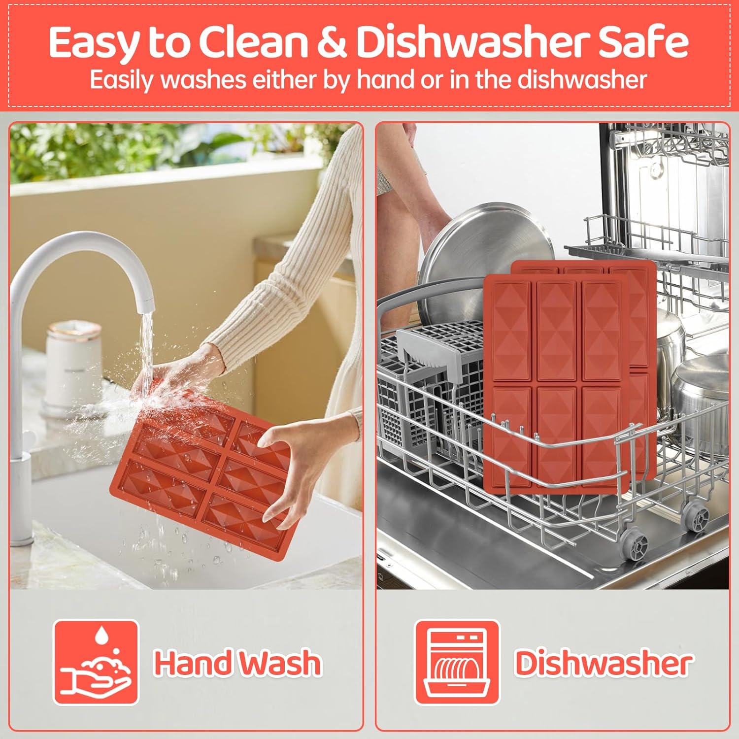 - Novelty Designs:The deep stuffed chocolate bar mold mini is our creative design and production done independently. with 100% food grade silicone stuffed chololate mold, products are mirror finish, easy to release the mold.flexible silicone material allows for easy release of chocolates without sticking, ensuring flawless and professional-looking chocolates every time. It is safe used in microwave, oven, freezer, and dishwasher. Temperature safe from -40℉ to 446℉(-40°C 至 230°C).