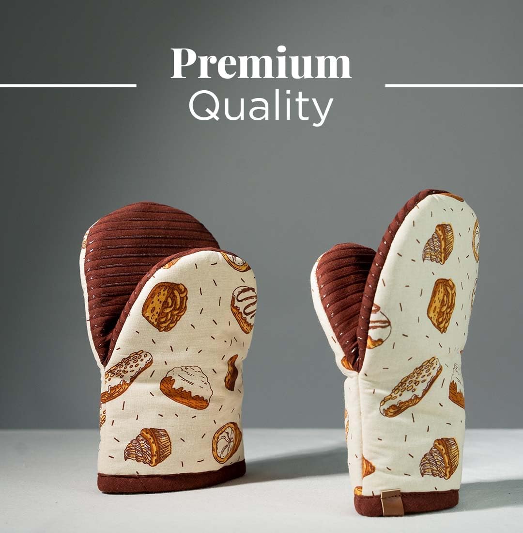 - [ NON-SLIP GRIP ] - The mini oven mitt or apartment essentials are crafted in pure cotton with a silicon layering that gives a robust grip. These cute oven mitts or brown oven mits come with a secure non-slip grip while handling pots and pans. They also act as the perfect baking supplies.
