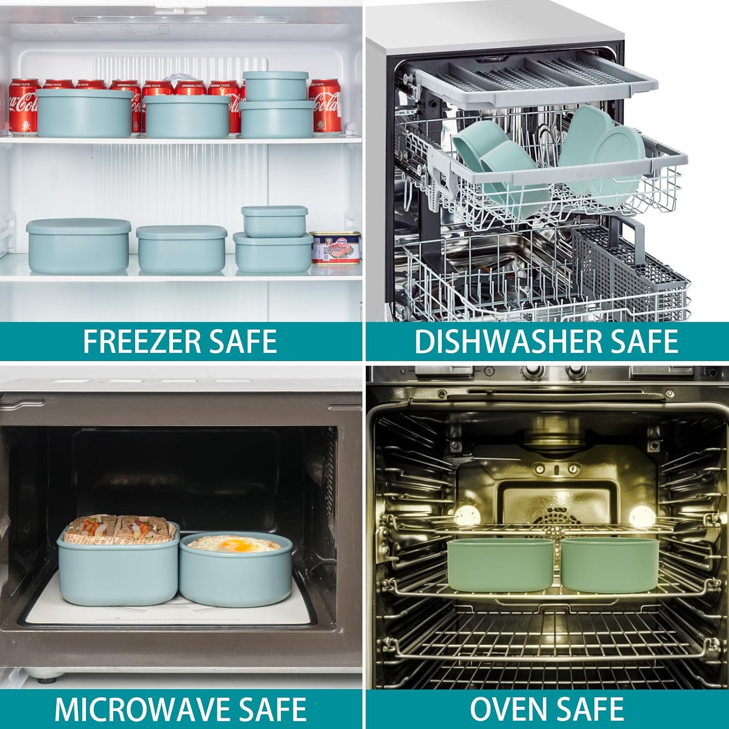 - Material Feature : 100% Silicone, Microwave Freezer Oven Air Fryer Dishwasher Safe, Plastic Free