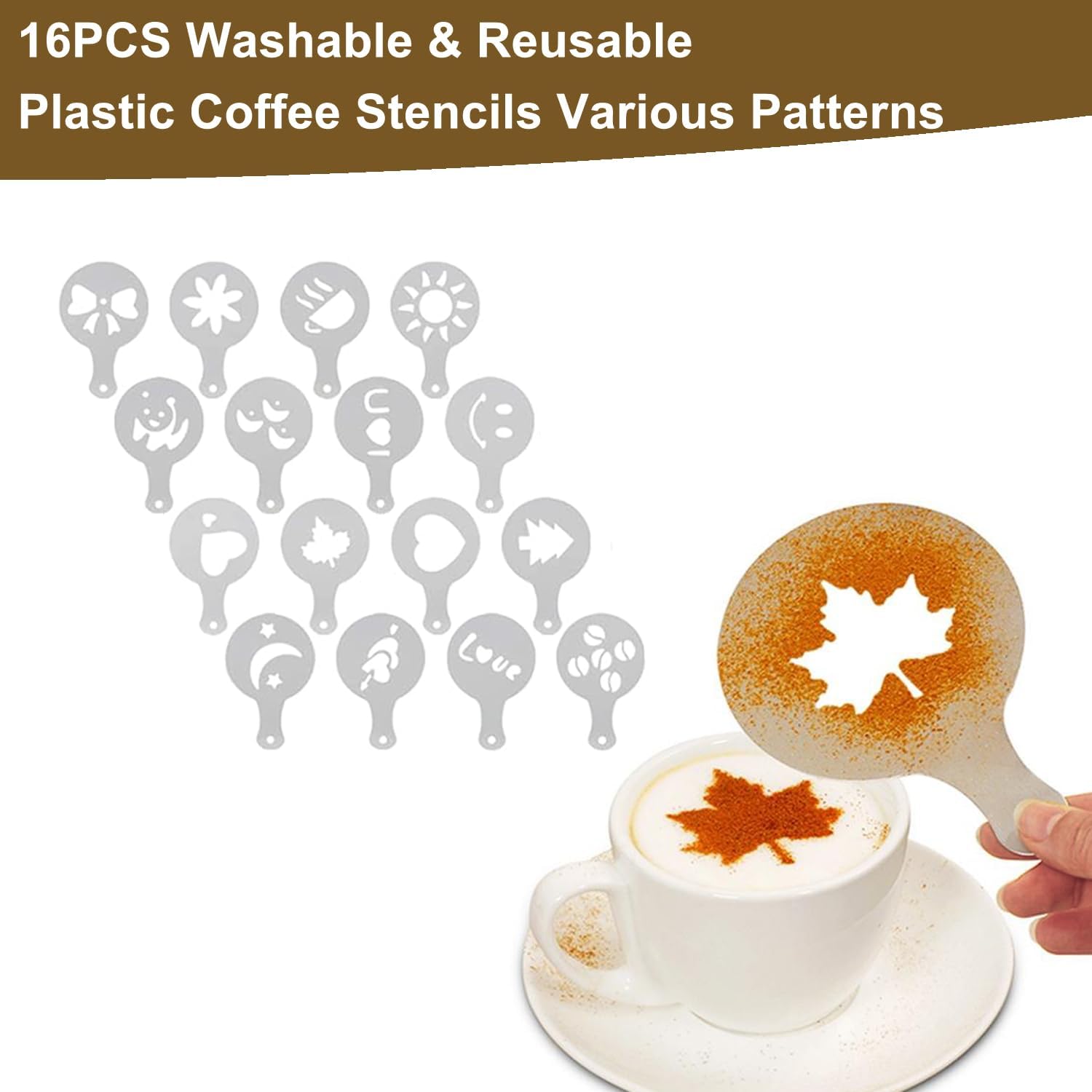 - 【16 PCS Coffee Stencils】Create beautiful latte art and more with these professional-grade stencils. Made from food-grade, durable PP plastic, they’re easy to clean and perfect for lattes, cappuccinos, cakes, and hot chocolate. Diverse patterns to suit every style