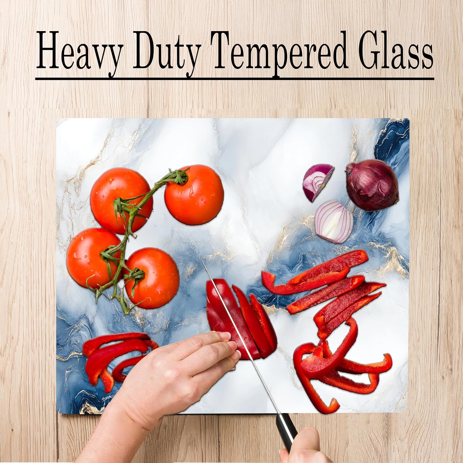 - This Heavy Duty Tempered Glass Kitchen Cutting Board Break Scratch Stain and Odor Proof Perfect For Slicing Dicing Cutting and Chopping Our Unique Marble rock or Quartz Patterns Make a Great Gift