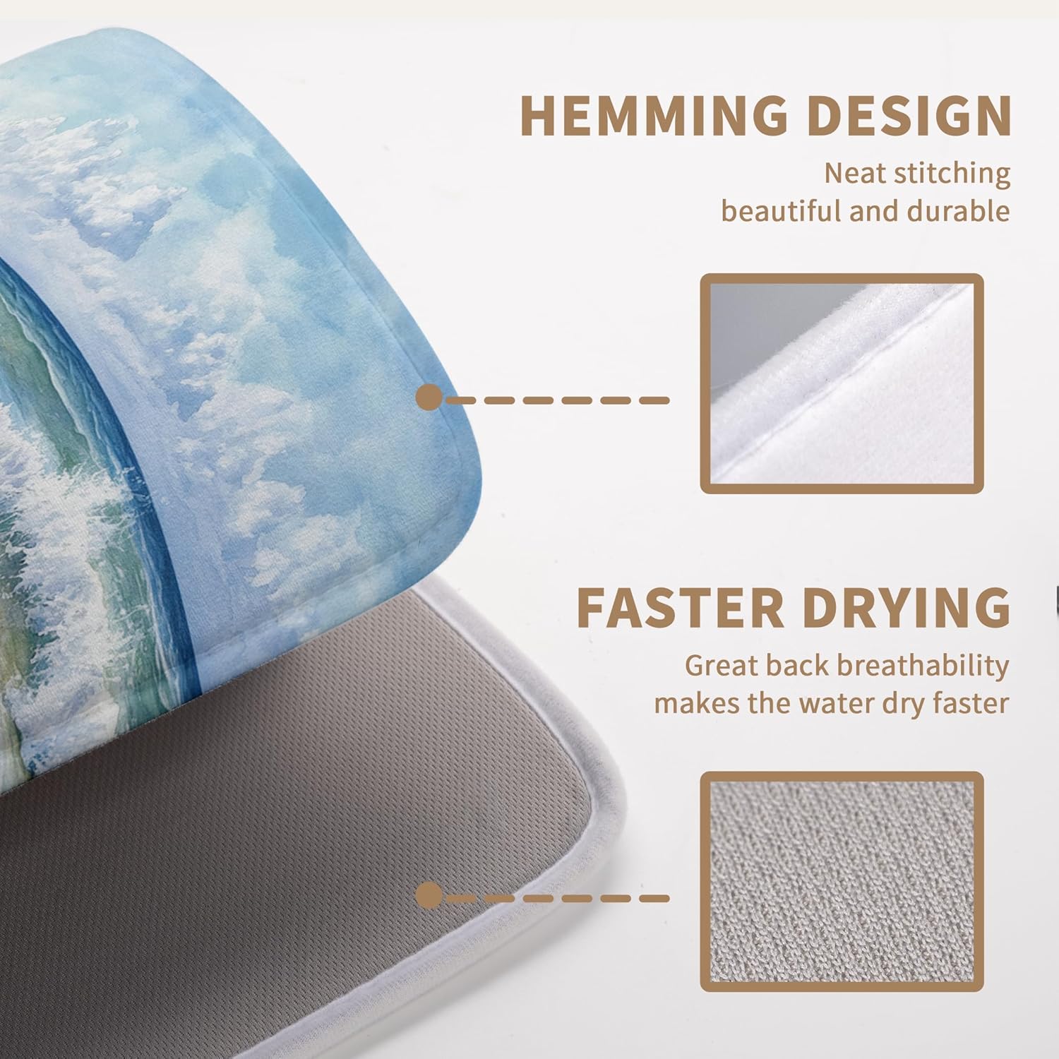- [Quick Absorption]: Made of absorbent material,our Summer Beach Starfish Coastal Shells dish dryer mat for kitchen absorbs water stains quickly, keeping your table top dry and clean, avoiding water stains and leaks, providing you with a pleasant and dry dining or working experience.