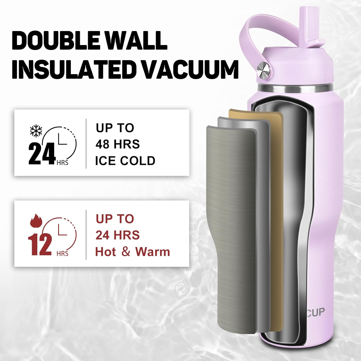 - 【2 LEAK-PROOF LIDS】ABOTOCUP 32 oz insulated water bottle provide a different drinking experience with two lids that are fully leak-proof and designed for effortless drinking. Water bottle stainless steel easy to use one-handed or hands-free drinking even when you're busy. Purple water bottle stainless steel perfect for all indoor and outdoor activities.