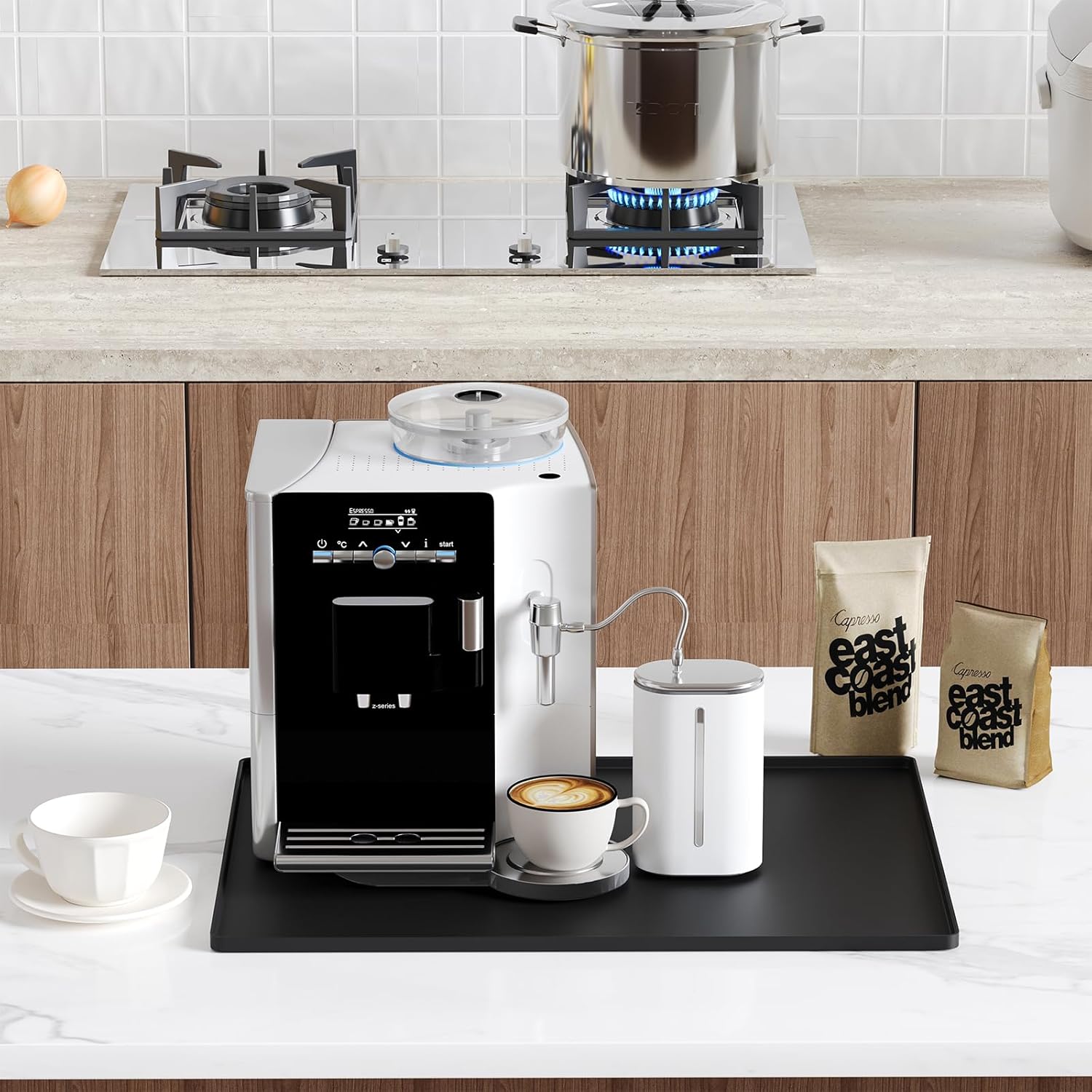 - 【Anti-Spill and Easy to Clean】The coffee mat is designed with a raised edge 0.4'' high, which can accommodate large amounts of water stains and prevent any leakage or spillage, effectively protecting the coffee bar or kitchen counter from causing contamination and damage to the countertop. Simply wipe or rinse the mat to keep it clean.