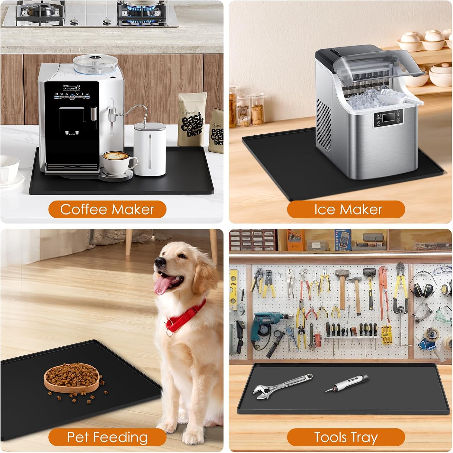 Silicone Coffee Mat with Raised Edges, 20'' x 15'', Keep Tidy for Countertops, Accessories Fit Under Coffee Maker Espresso Machine, Dish Drying Mat, Baking Mat (Black)