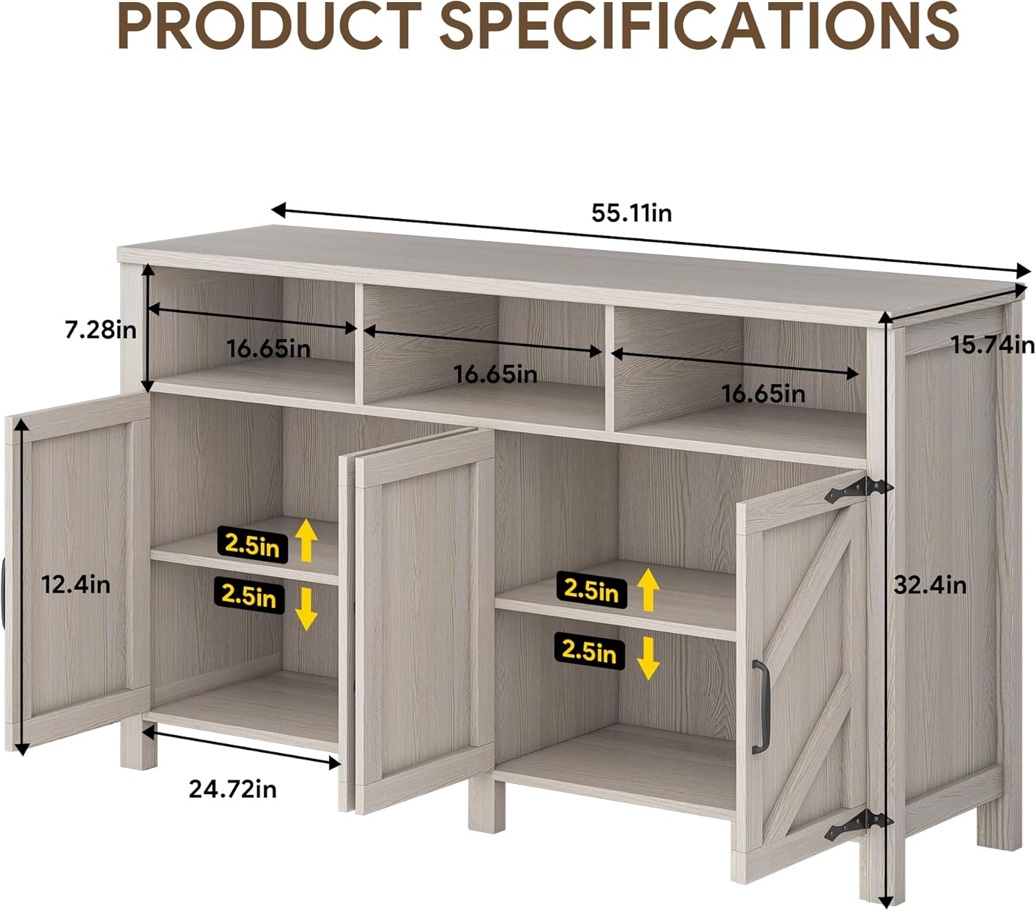 Buffet Cabinet with Storage Farmhouse with 4 Doors, 55'' Large Kitchen Storage Cabinet Wood Coffee Bar Buffet Sideboard for Kitchen, Dining Room, Entryway