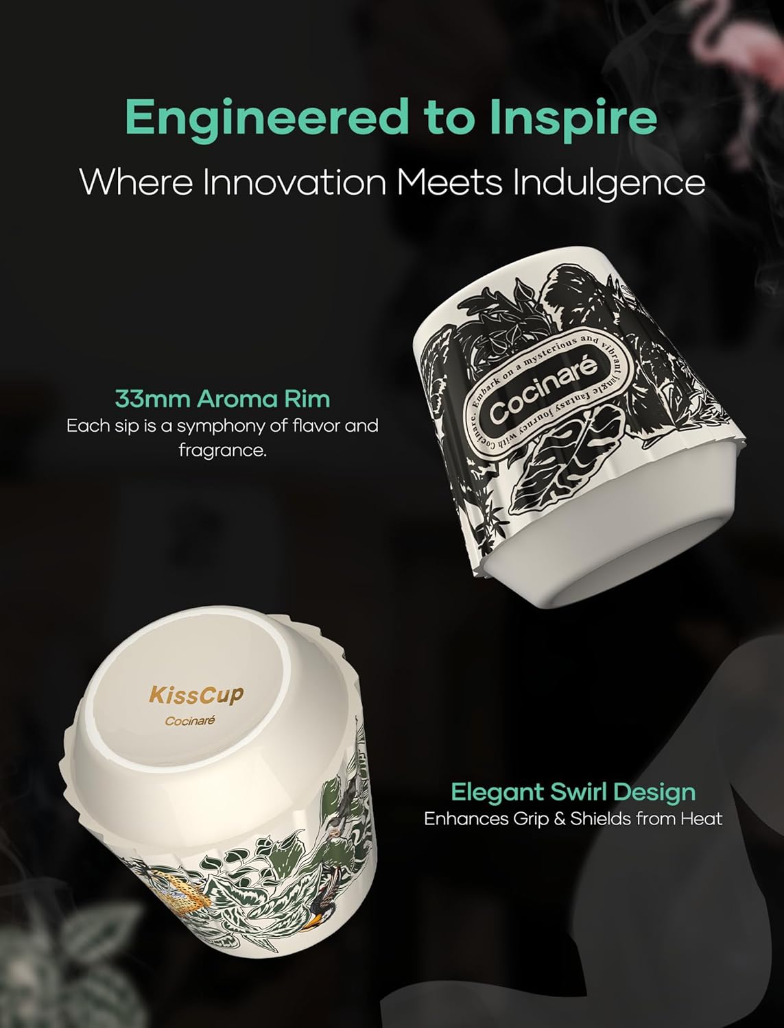 Cocinare KissCup Ceramic Espresso Cup – 2.2oz Demitasse Cup for Espresso, Pour-over coffee & Tea, Jungle, Color-Changing Collection