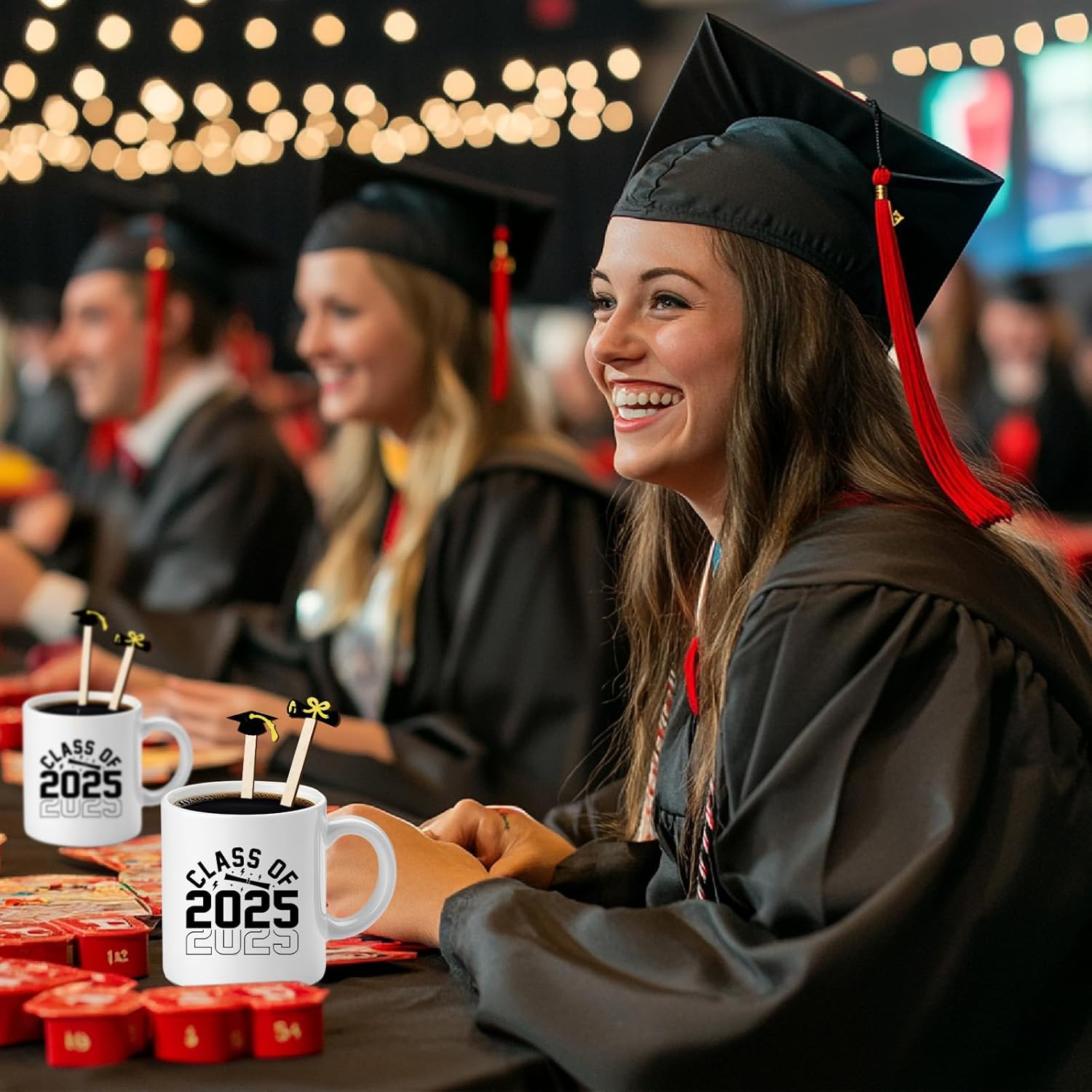 - PROPER SIZE: The grad hat drink stirrers are about 5.9 x 1.2 inch, appropriate for most small coffee cups, allowing you to stir your favorite coffee, tea, water, milk, hot chocolate or other drinks comfortably