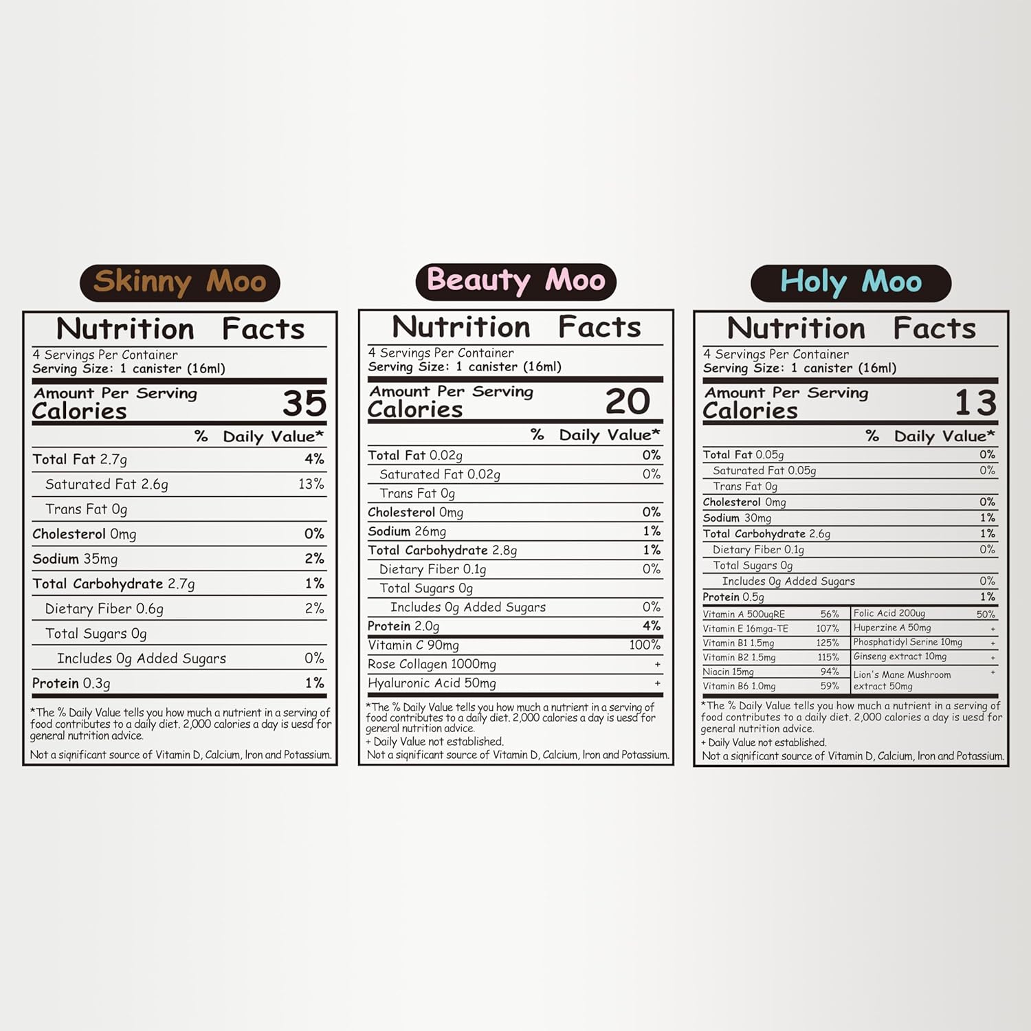 - 📦 The Complete Cold Coffee Concentrate Pack - Trifacta Pack offers 4x Skinny Moo, 4x Beauty Moo, and 4x Holy Moo (Mushroom Coffee) blends, catering to various lifestyles and wellness goals like boosting brain functions, or improving your hair, skin, and nails. Complete Cold Brew Kit.