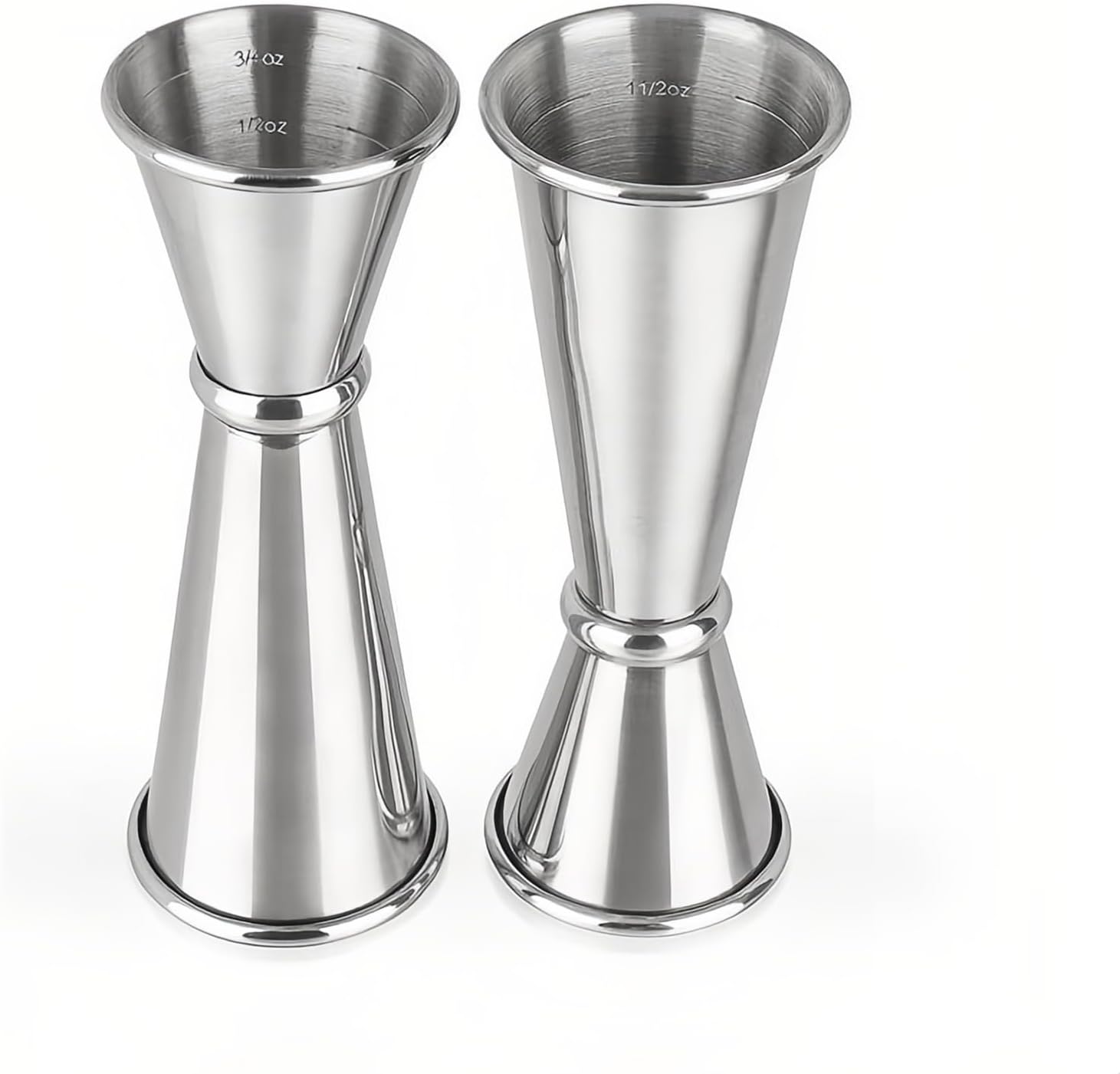 2-Piece Dual-Sided Bartending Jigger Set - 1oz & 2oz Measured Markings, 304 Stainless Steel, Food-Grade Cocktail Measuring Tool for Professional & Home Bars