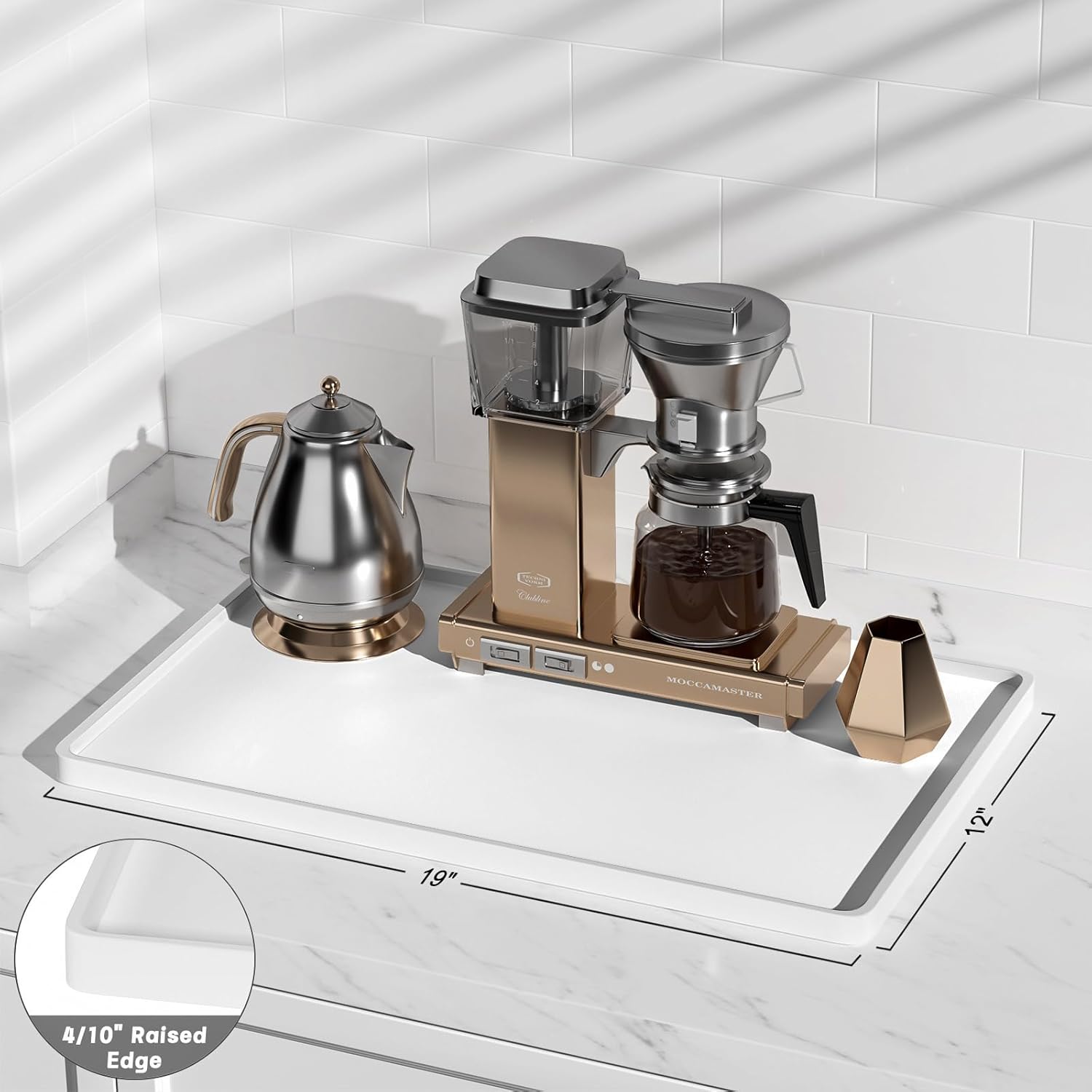 Rnivvi Silicone Coffee Mat, 12" x 19" Waterproof Raised Edge Coffee Bar Mats for Espresso Machine Station Accessories, Heat Resistant Dish Drying Pad for Kitchen Counter, Rubber Bar Decor Pad, White