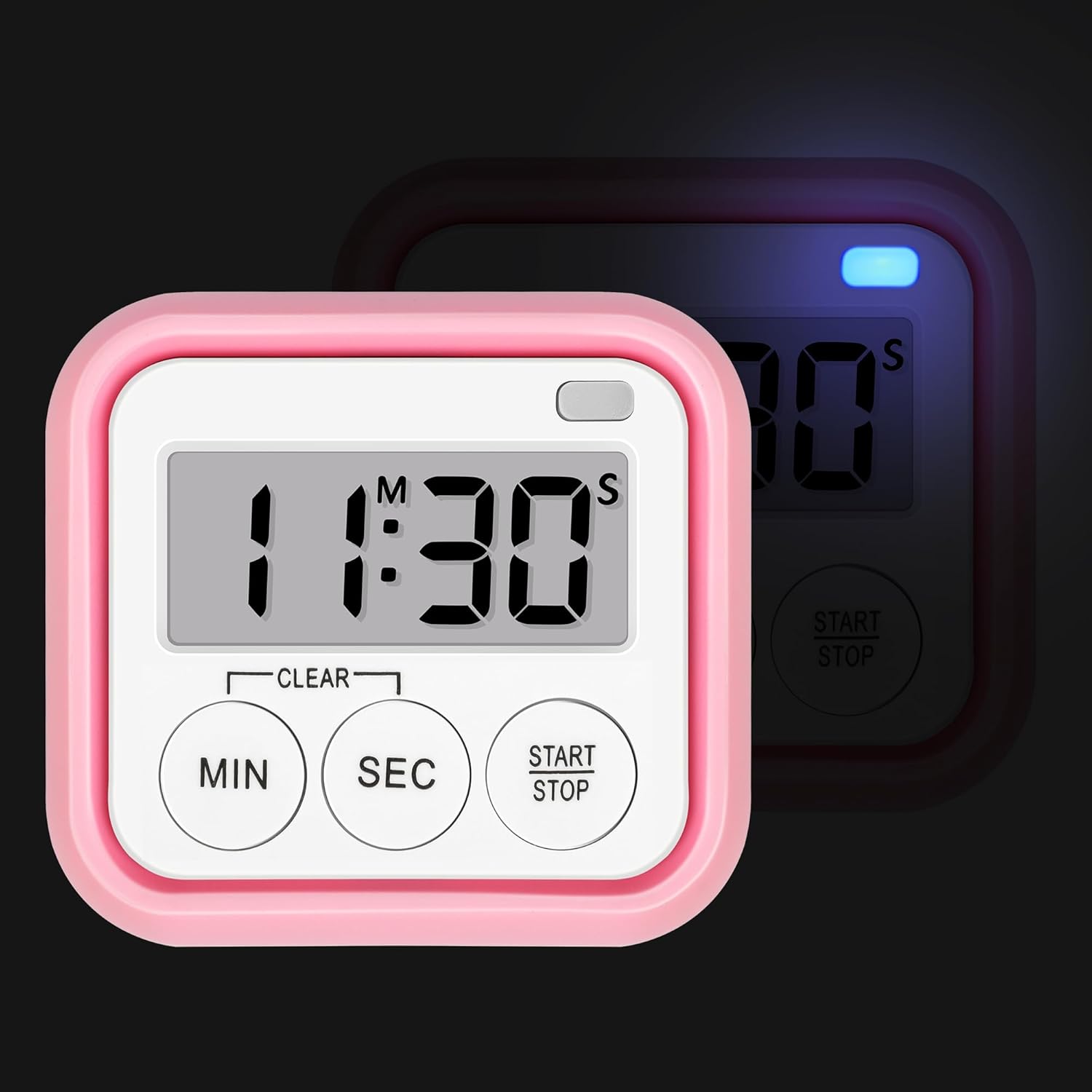 Timer, Kitchen Timers for Cooking Classroom Timer for Kids Teachers Magnetic Digital Timers 4 Pack, Pink
