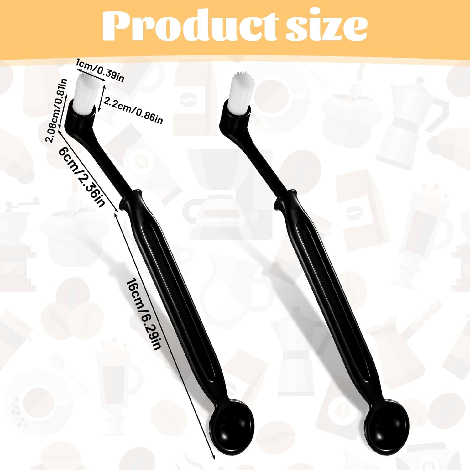 - 【Versatile Cleaning Tool】 Espresso machine brush offers dual-purpose functionality with its cleaning brush and built-in spoon for efficient coffee handling.