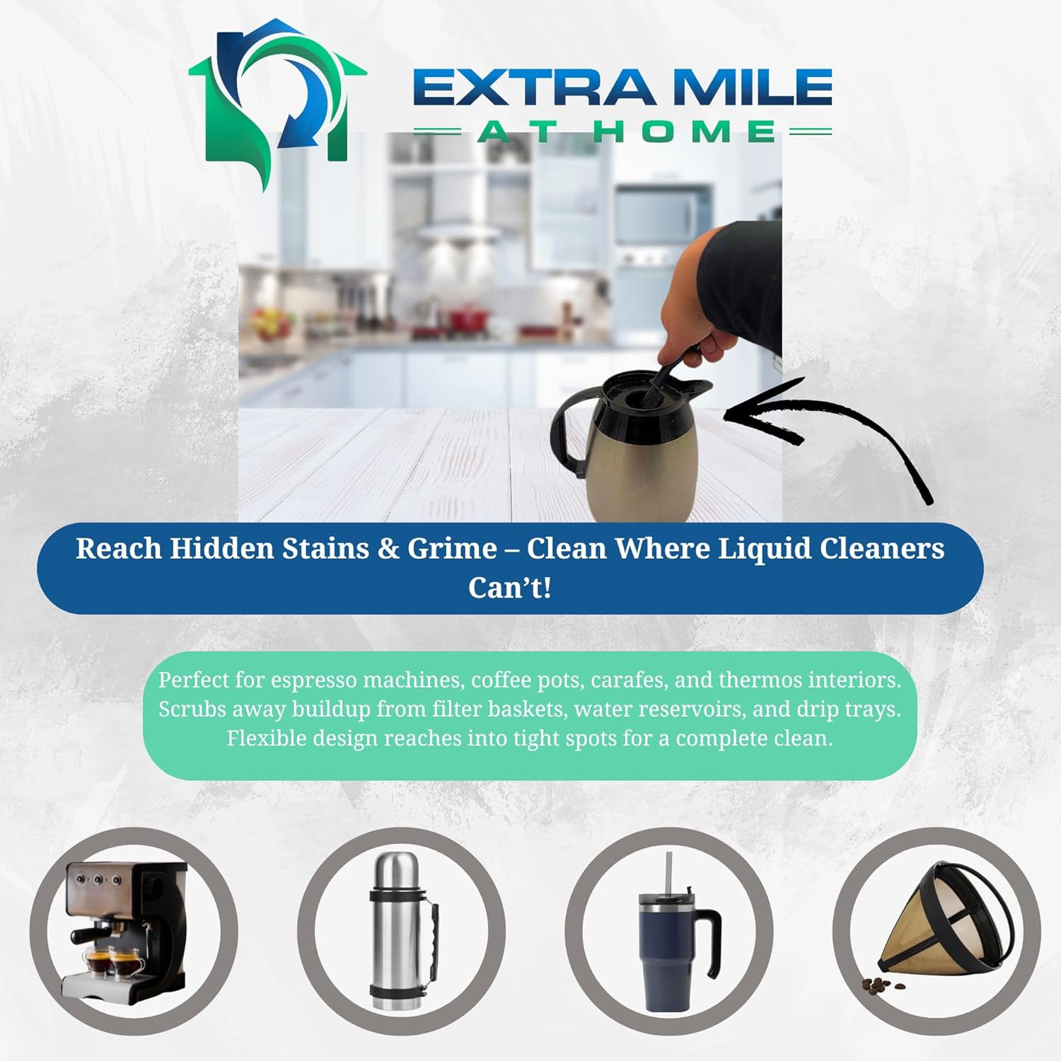 - Removes Stubborn Stains and Descales – Coffee oils and mineral deposits accumulate over time, leading to bitter-tasting coffee and inefficient brewing. This heavy-duty coffee maker cleaner is designed to break down tough stains and eliminate buildup from coffee pots, stainless steel carafes, and single-cup machines. The crevice brush reaches deep into corners and tight spaces for a thorough clean, preventing blockages and ensuring your machine operates smoothly for consistent, great-tasting coffee.