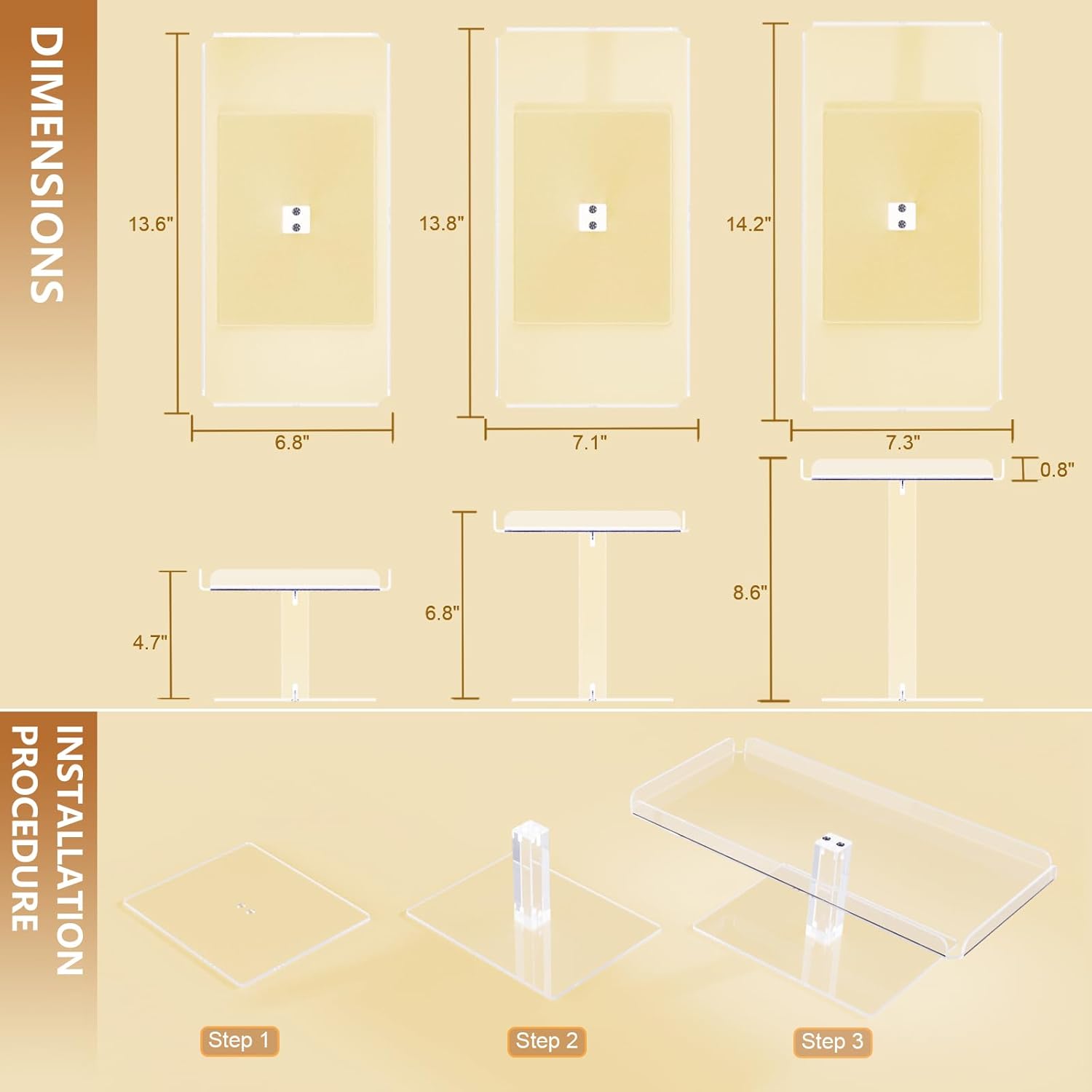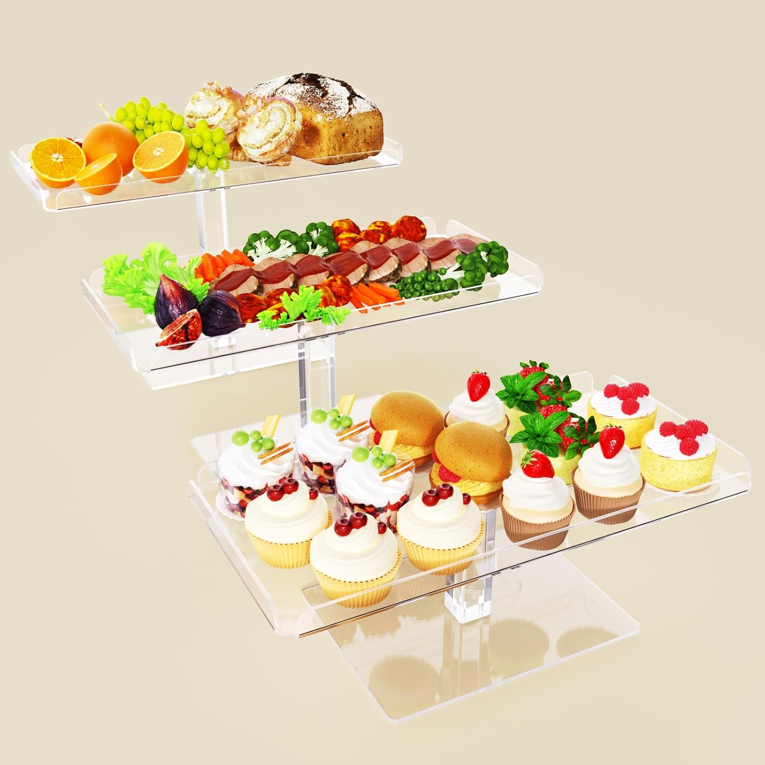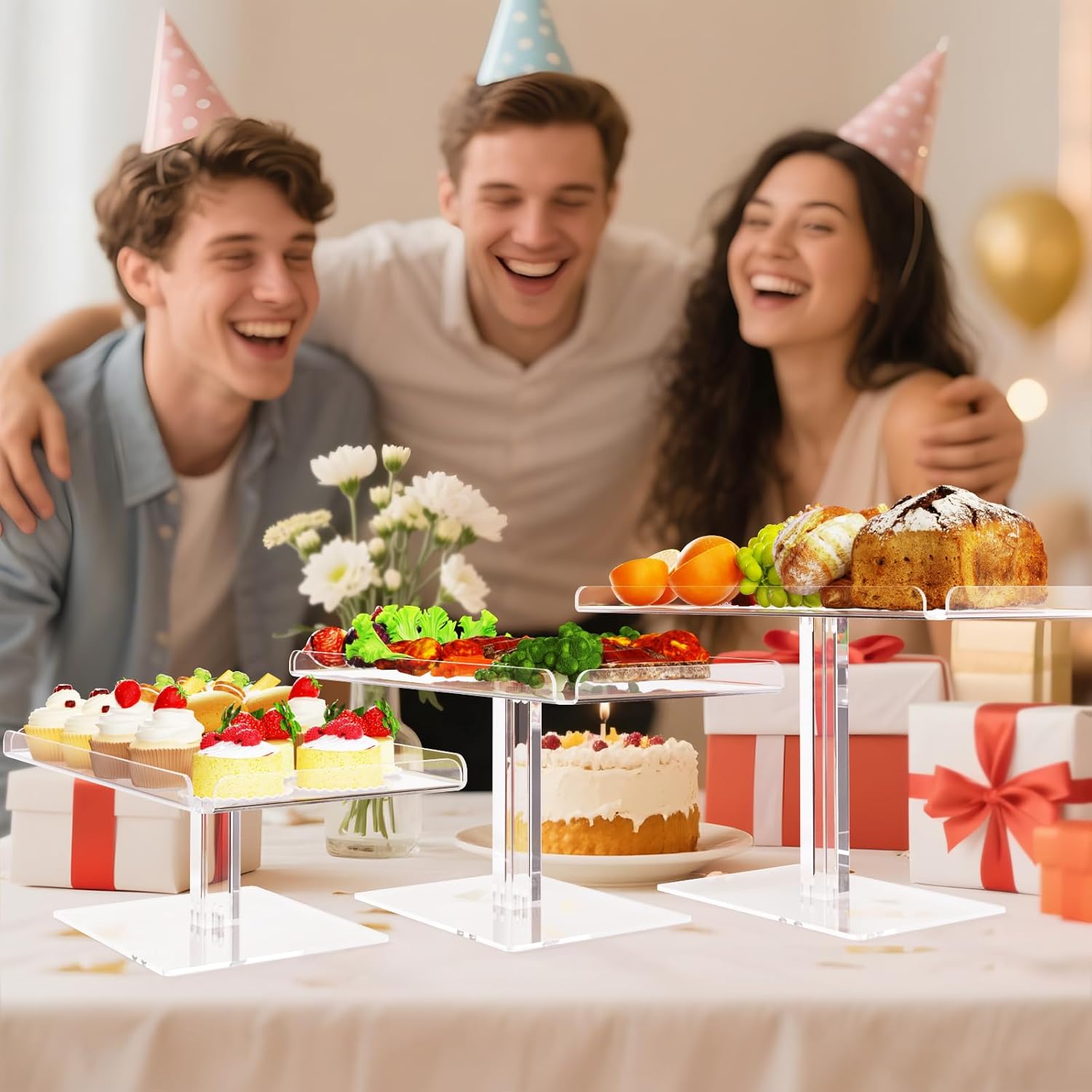 - Impressive Details: Constructed with 3mm (0.12-inch) thick acrylic, these cupcake stands boast impressive strength and longevity. The smooth, scratch-resistant edges and open-ended design allow for easy cleaning. The integrated acrylic dessert display's fence is seamlessly formed through a heat-bending process, eliminating adhesives and any chemical odors.
