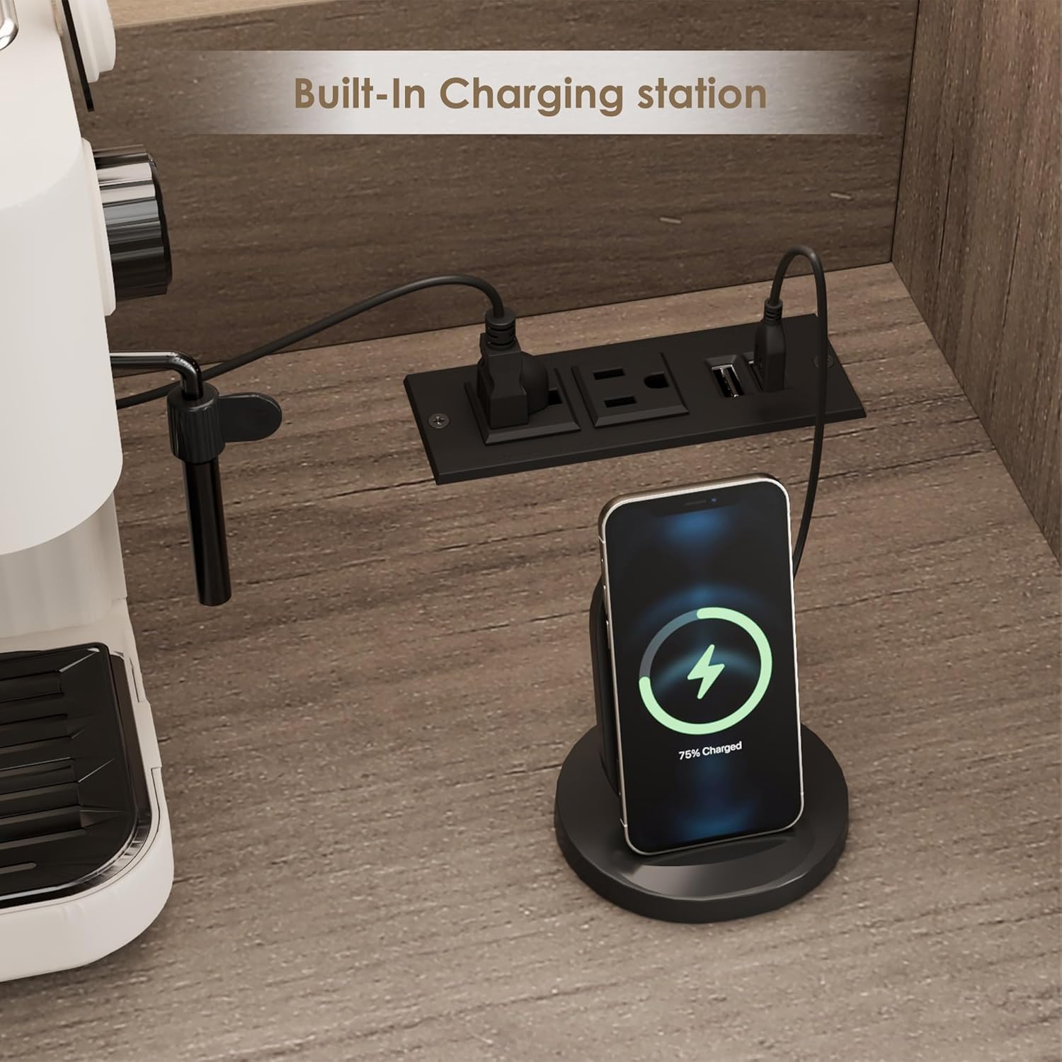 - SPACIOUS COUNTERTOP WITH CHARGING STATION: This kitchen pantry cabinet boasts a 47.2"W x 20.3"H countertop, providing ample space for all your essentials. Designed with convenience in mind, it includes 2 AC power outlets and 2 USB ports, making it easy to power and charge appliances such as coffee makers, ice makers, microwaves, toasters, and more. Whether you're preparing your morning brew or hosting a gathering, this cabinet meets all your needs. Sit back, sip, and savor the moment