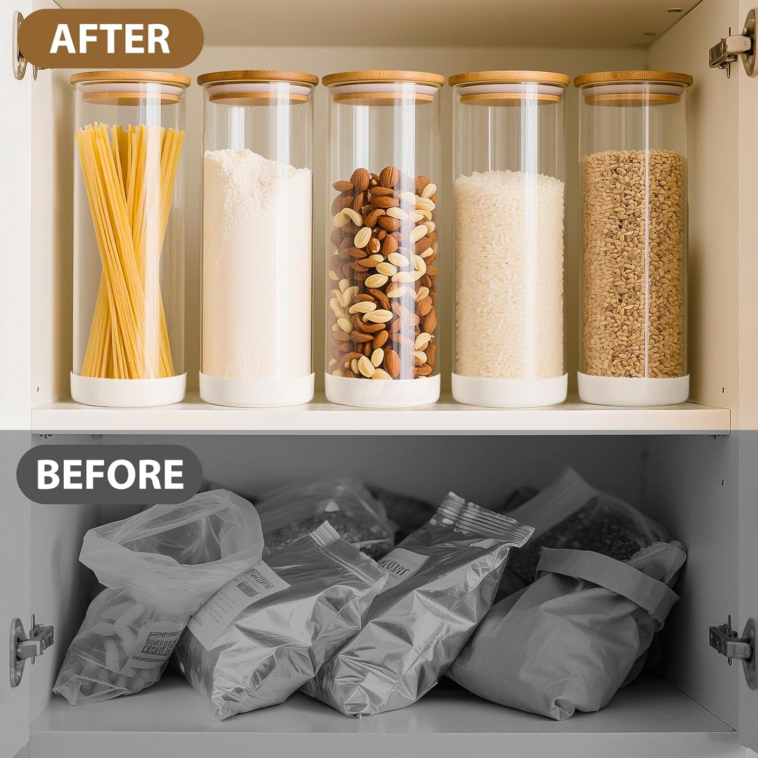- Versatile Pantry Solution – Ideal for organizing bulk pantry goods like flour, pasta, coffee beans, rice, and snacks. These jars are reusable, eco-friendly, and easy to clean – a stylish and sustainable choice for any kitchen.