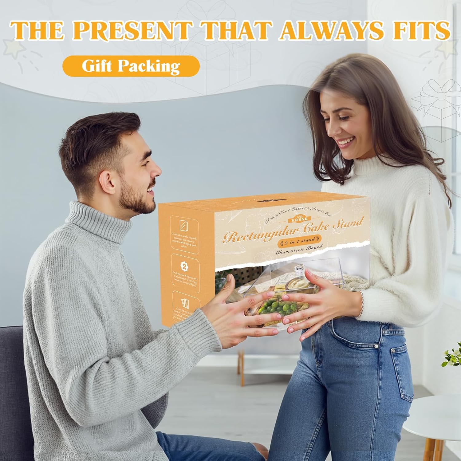 - 【Elegant Gift Packaging】Arriving in beautiful gift box packaging with clear instructions, this rectangle cake stand is presentation-ready. An ideal gift for baking enthusiasts, party hosts, or anyone who appreciates stylish and functional kitchenware. This versatile charcuterie board with lid and cake display solution is sure to delight as a thoughtful and practical present.
