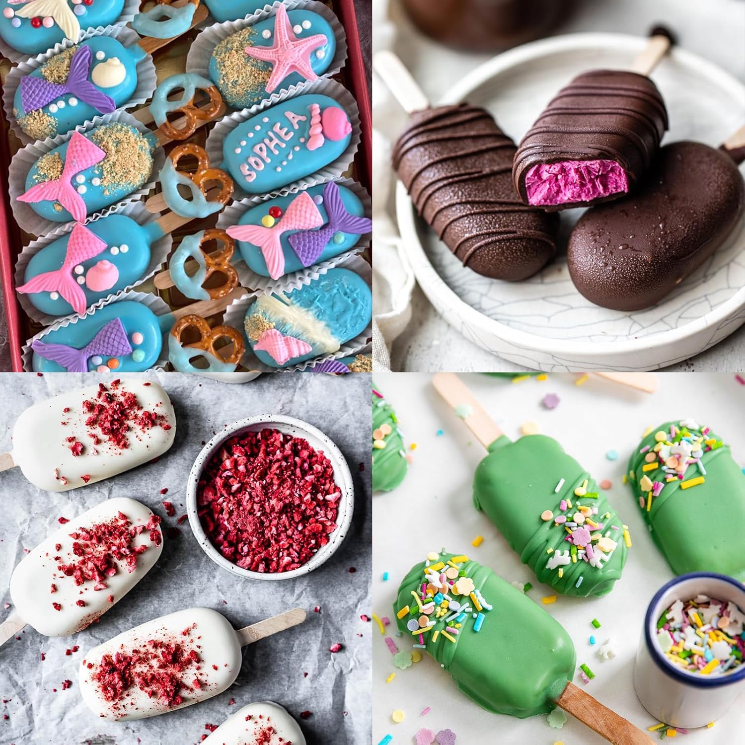 - EASE TO USE: You can use fruit juice, milk and other ingredients, insert the popsicle stick into the cake pop mixture, after they're fully set, carefully pop them out of the ice pop mold. Decorate with drizzled chocolate, edible glitter, sprinkles, icing shapes, in whatever flavors you like, they work well to make healthy popsicles