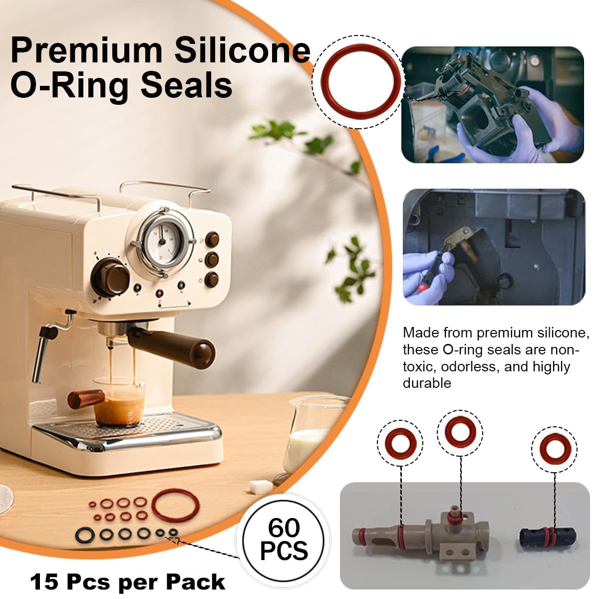 60Pcs Coffee Machine O Loop Seal Kit, Silicone O-Ring Seal Replacement Parts, Watertight O Ring Seal Washer Gaskets for Espresso Machine Different Sizes