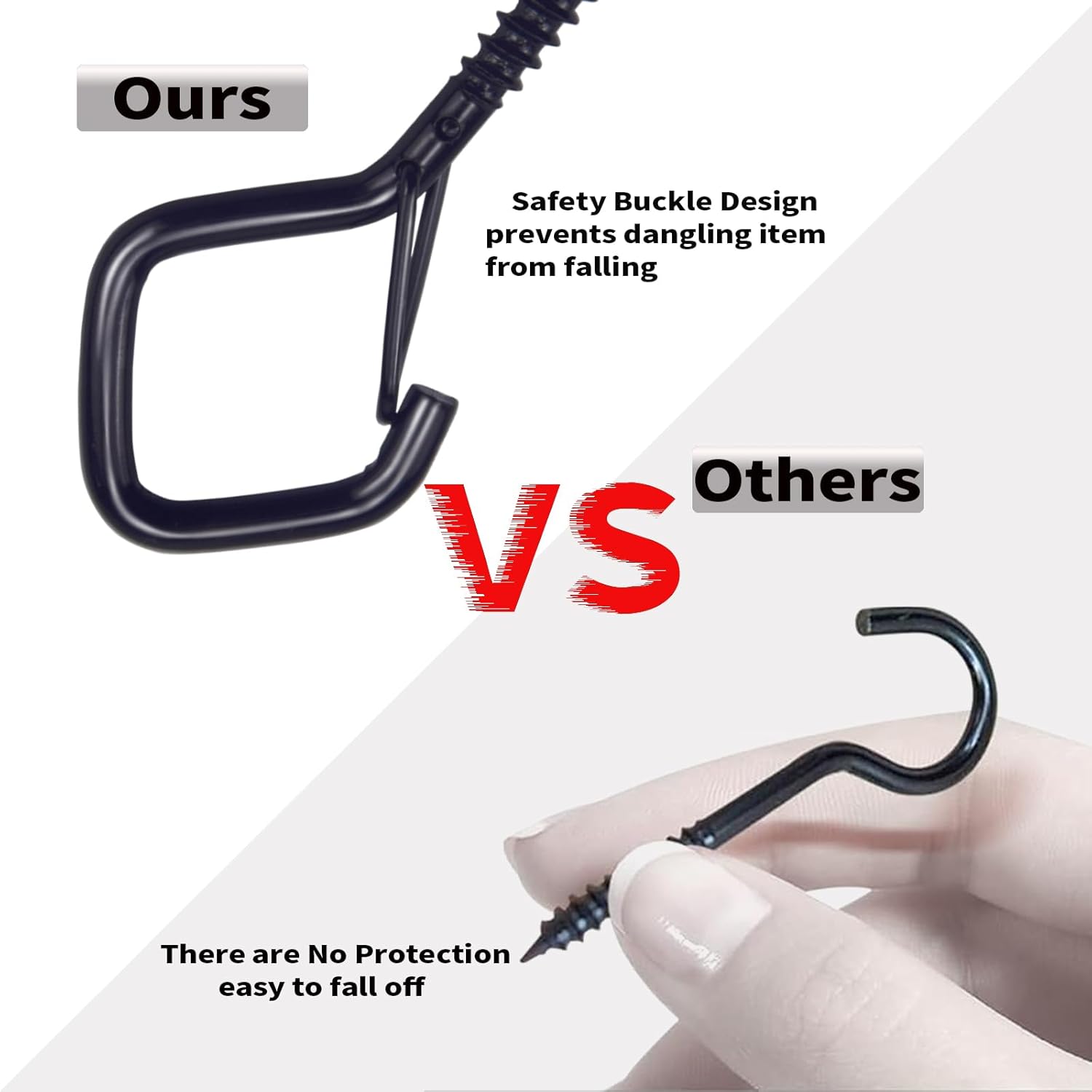 50 PCS Black Eye Screw Hooks for Hanging Heavy Duty with Safety Buckle.Metal Ceiling Hooks for Hanging Plants Cup Wind Chime Bird Feeders Patio Lights at Indoor&Outdoor