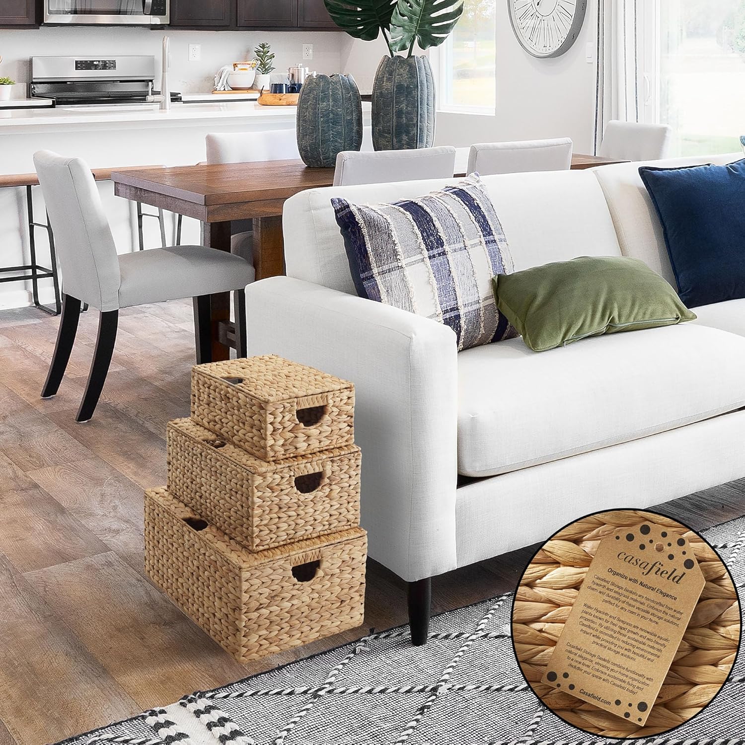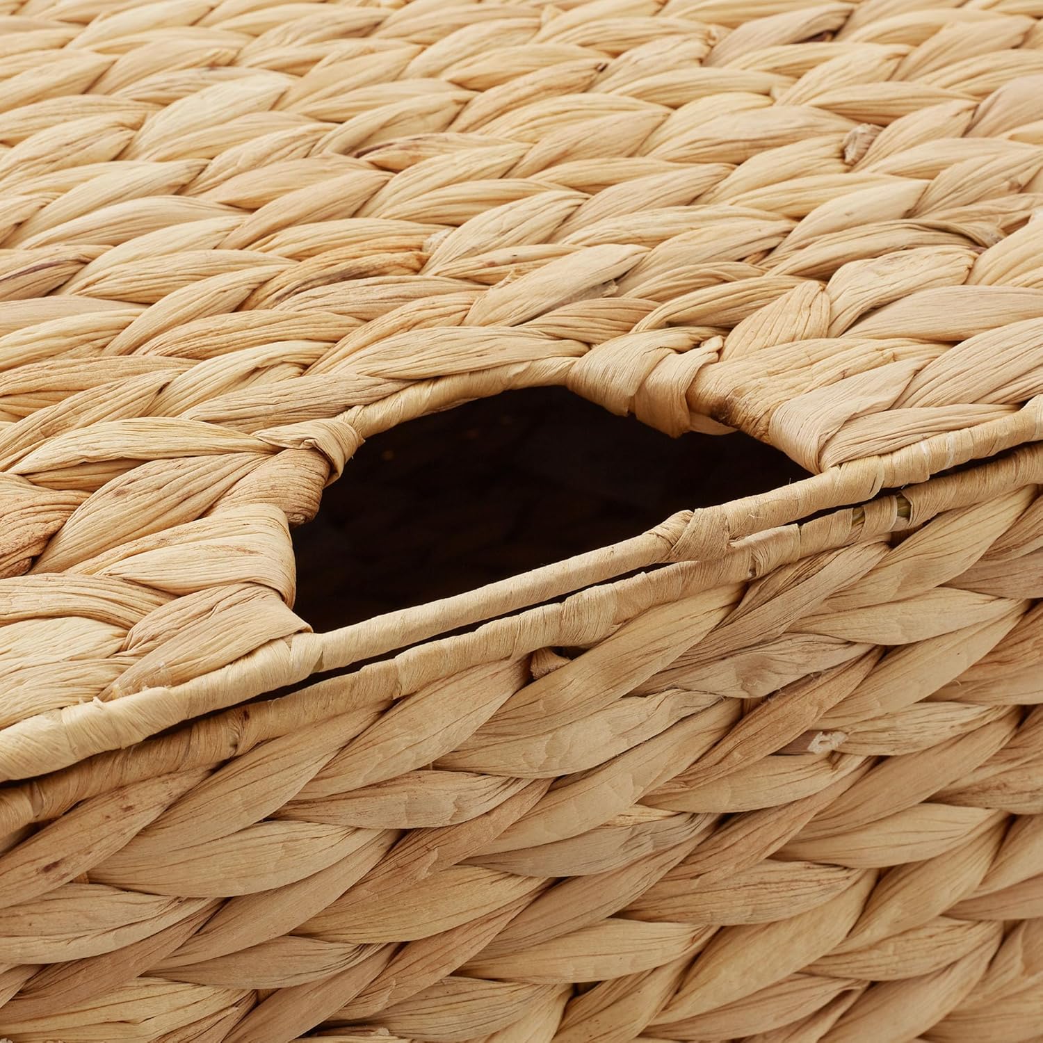 Casafield Set of 3 Water Hyacinth Rectangular Storage Baskets with Lids (Natural - Small/Medium/Large) for Bedroom, Bathroom, Laundry, Home Office