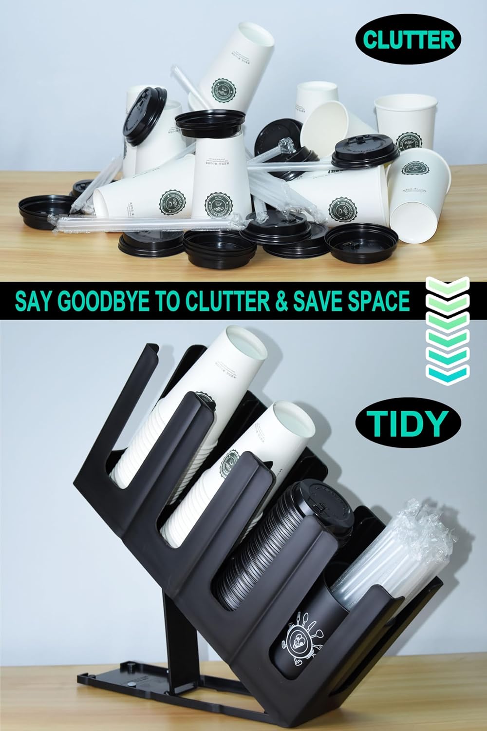 Cup Holder Lid Dispenser with Straw Organizer,Disposable Coffee Cup Dispenser,Cup Storage Organizer for Breakroom Countertop Coffee Station Bar Restaurant