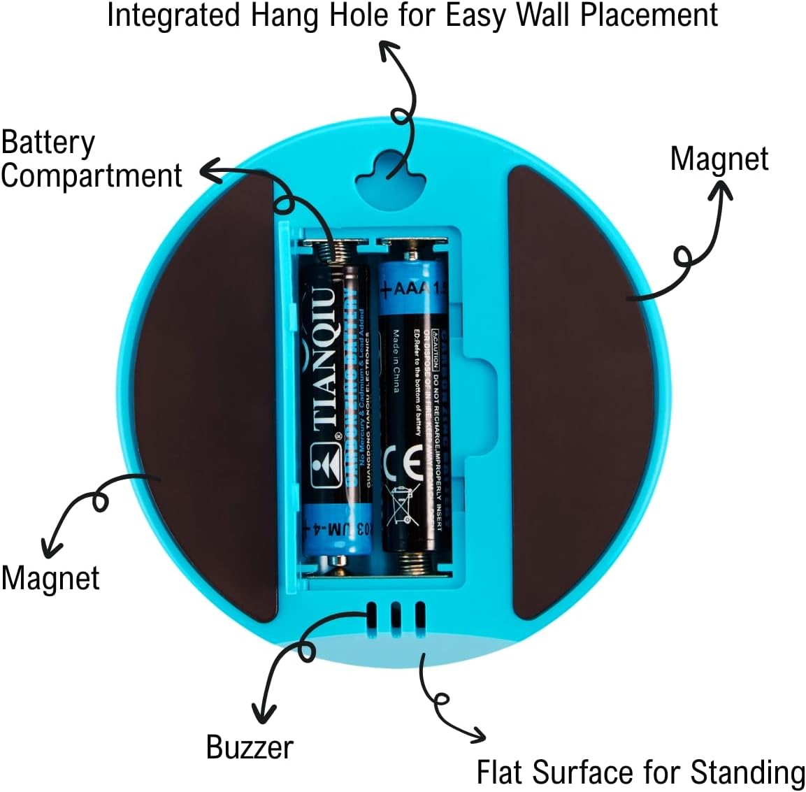 - [Compact & Portable Design] This kitchen timer has a 8cm (3.15 inches) diameter and magnetic backing, makes it easy to place on any countertop, classroom desk, or attchment to fridge
