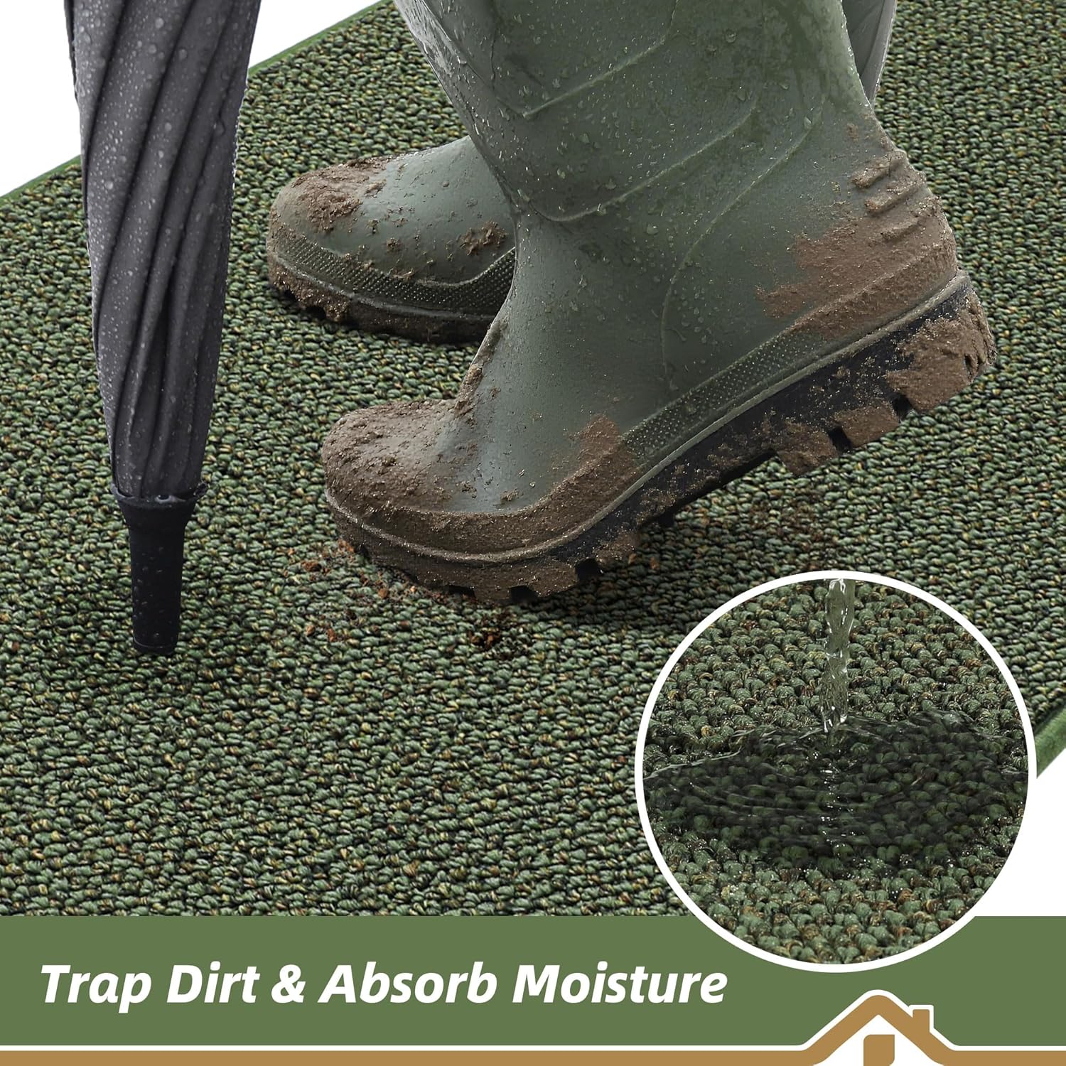 BEQHAUSE Dirt Trapper Door Mat 20" x 48", Non-Slip Washable Doormats Entrance Mat, Dirt Resistant and Absorbent Welcome Mat, Low Profile Floor Mats for Front Back Door and Entryway, Green