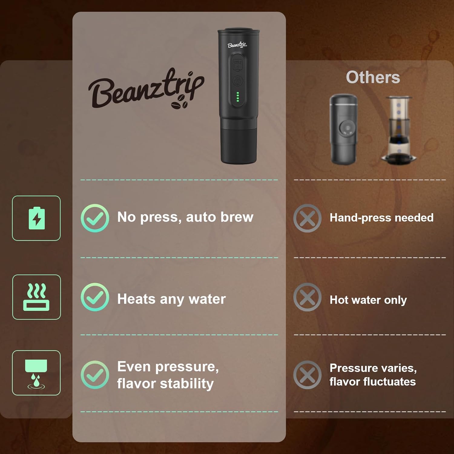 - ăCompatible with NS Capsules & Ground CoffeeăNo more compromises! Brew your favorite freshly ground coffee or use convenient coffee capsules (fits Nespresso capsule original pods). BeanzTrip portable espresso machine is perfect for coffee lovers who crave flexibility.