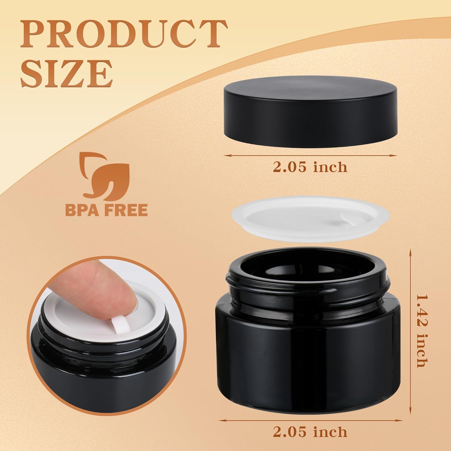 - 【Premium Airtight Glass Jars】 Crafted with thick borosilicate glass and black phenolic lids, these jars provide 100% leakproof protection. Inner silicone liners block air/moisture, ideal for light-sensitive CBD creams, organic balms, and essential oils.