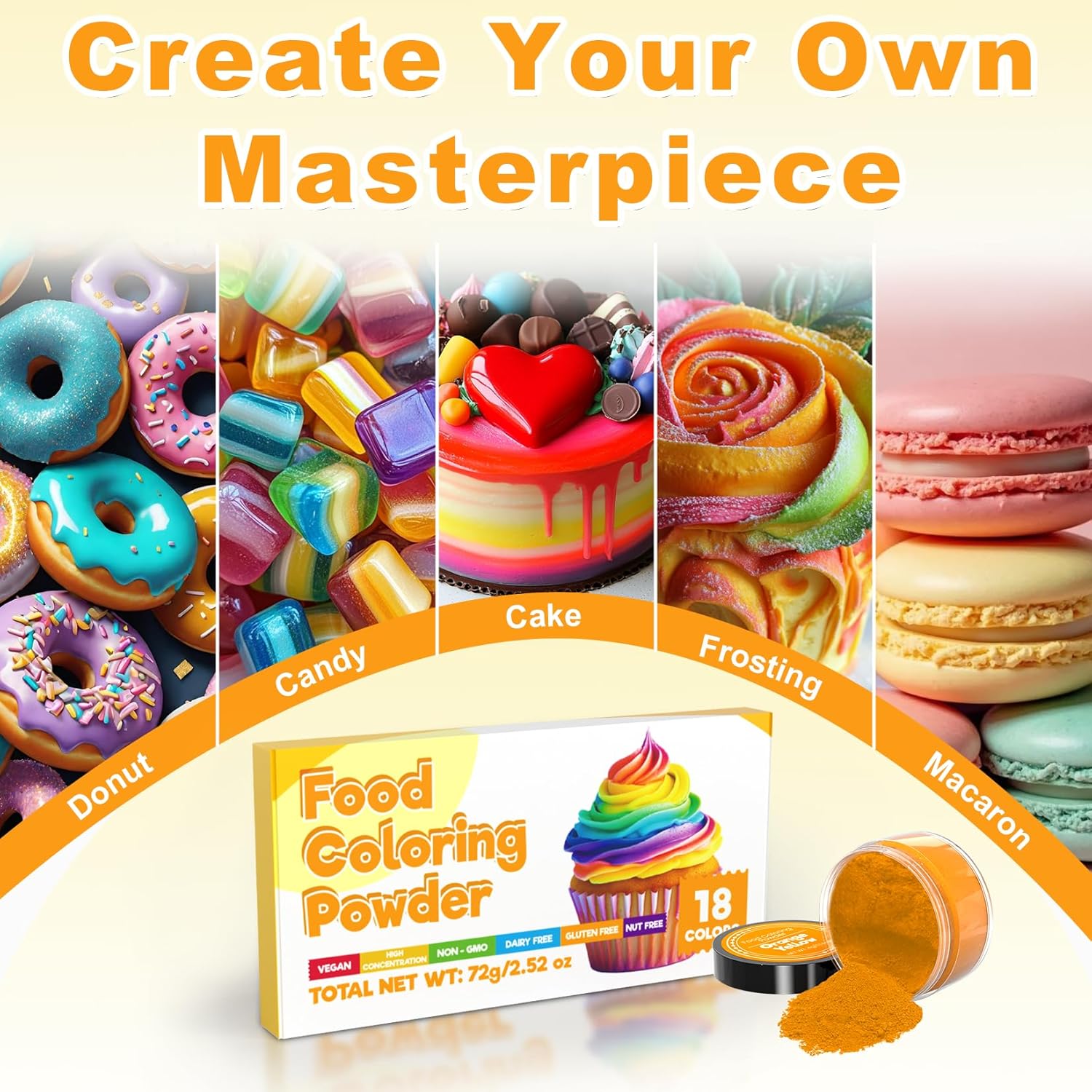 Food Coloring Powder, 18 Colors Powder Food Coloring for Baking, Powdered Edible Food Dye for Cookies, Fondant, Cake Decorating - 4g/Bottle