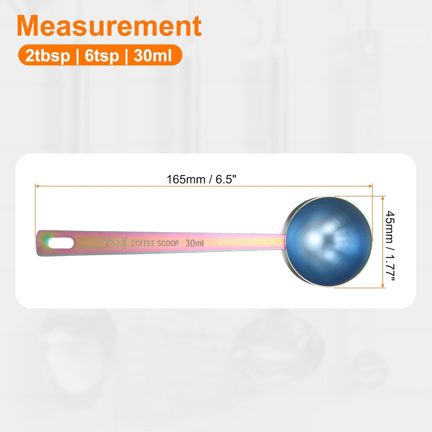 HARFINGTON 2pcs Coffee Scoop Spoon 2tbsp (6tsp, 30ml) 304 Stainless Steel Long Handle Teaspoon/Tablespoon Measuring Spoons Scoops for Tea Sugar Kitchen, Multicolor