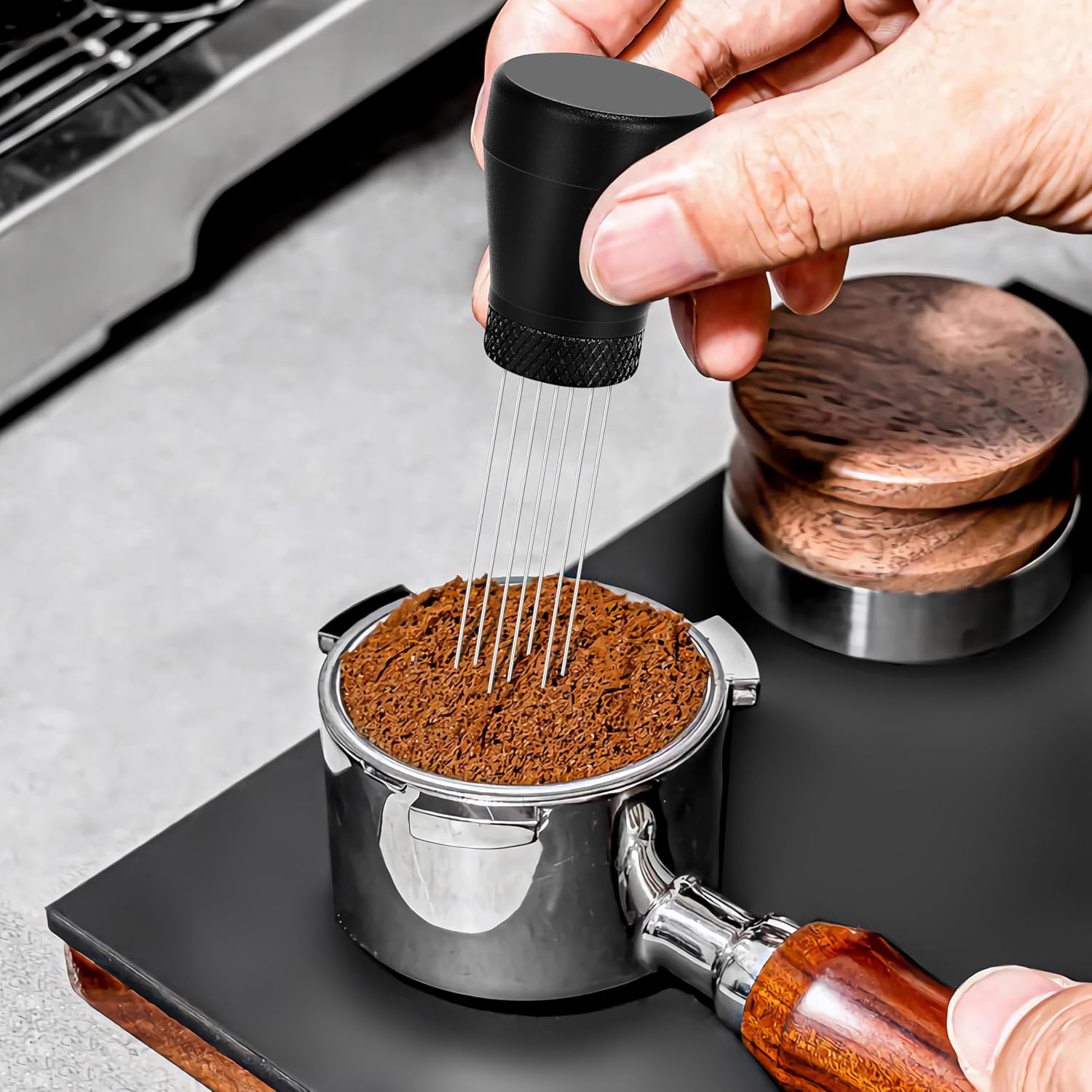 - This Espresso coffee stirrer is made of 7 pieces 304 stainless steel needles that are 0.3 mm in diameter, and it comes with extra 3 pieces pins. Unlike other WDT tools, the Apexstone espresso distribution tool can be easily assembly and disassembly, you can adjust the quantity of the pins and replace it as you like
