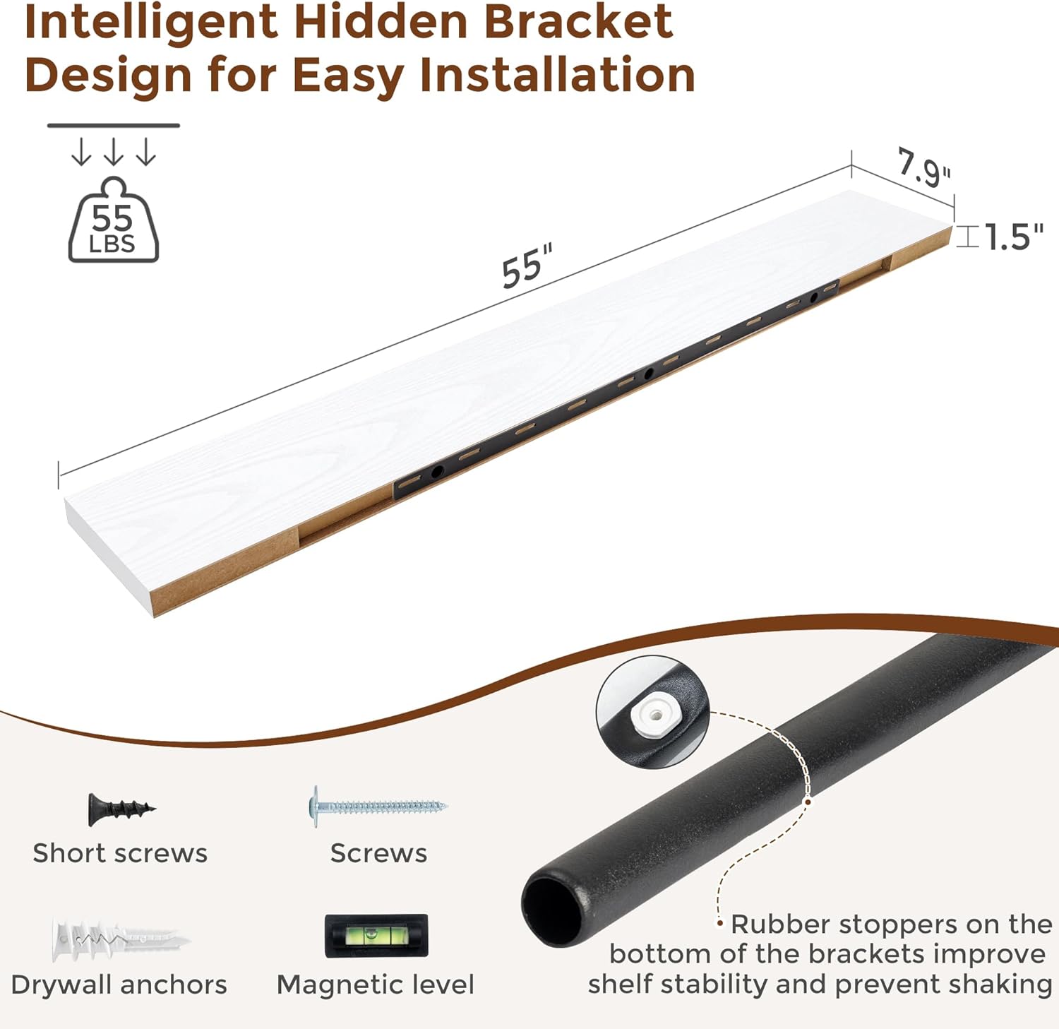 - Size : 55''W x 7.9''D x 1.5''H,Set of 2-MDF