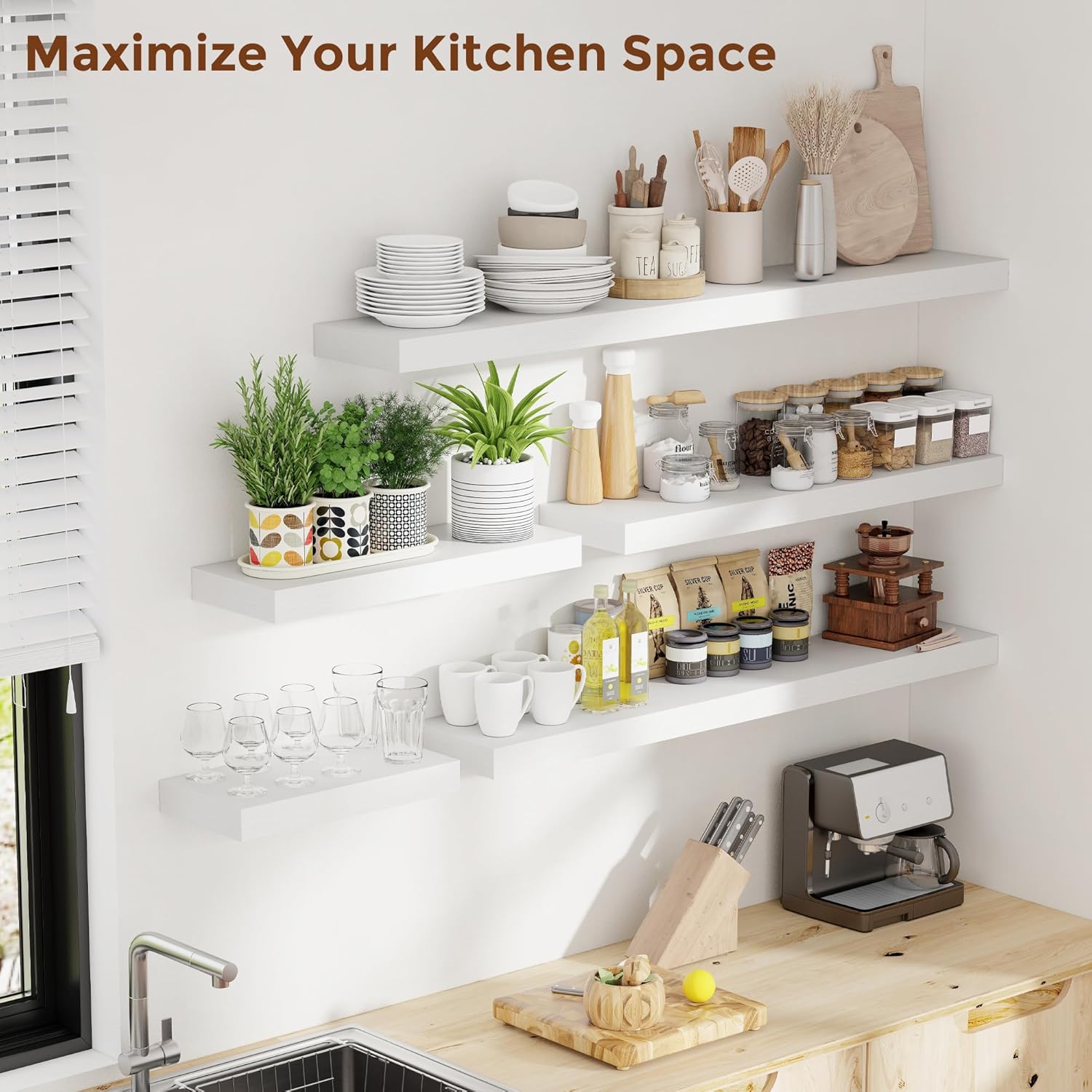 Heimlove 55 Inch Floating Shelves for Wall 8 Inch Deep White Shelves Set of 2,Wall Mounted Rustic Wood Long Floating Shelf,Large Extra Display & Storage Shelf with Invisible Brackets