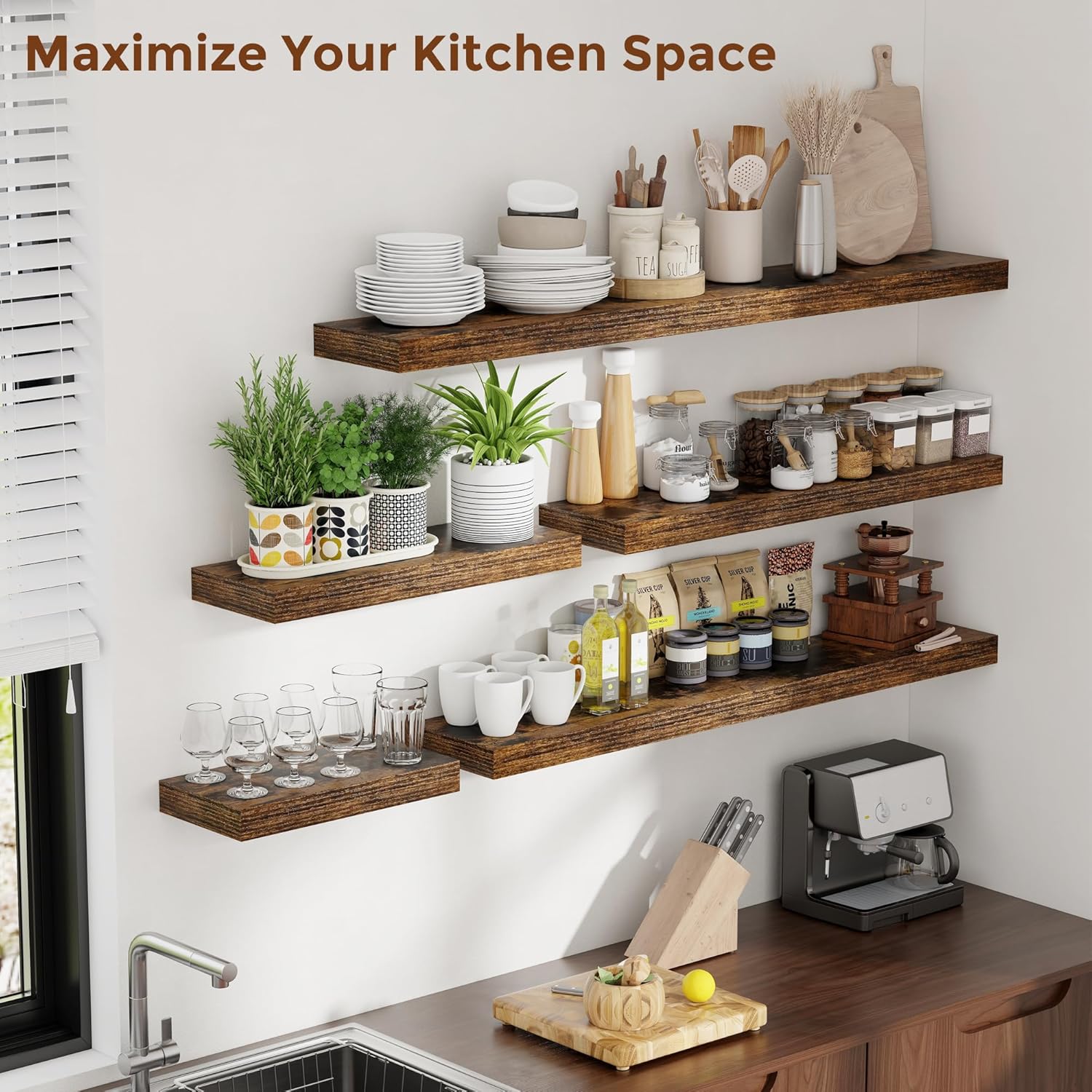 Heimlove 55 Inch Floating Shelves for Wall 8 Inch Deep Rustic Brown Shelves Set of 2,Wall Mounted Rustic Wood Long Floating Shelf,Large Extra Display & Storage Shelf with Invisible Brackets