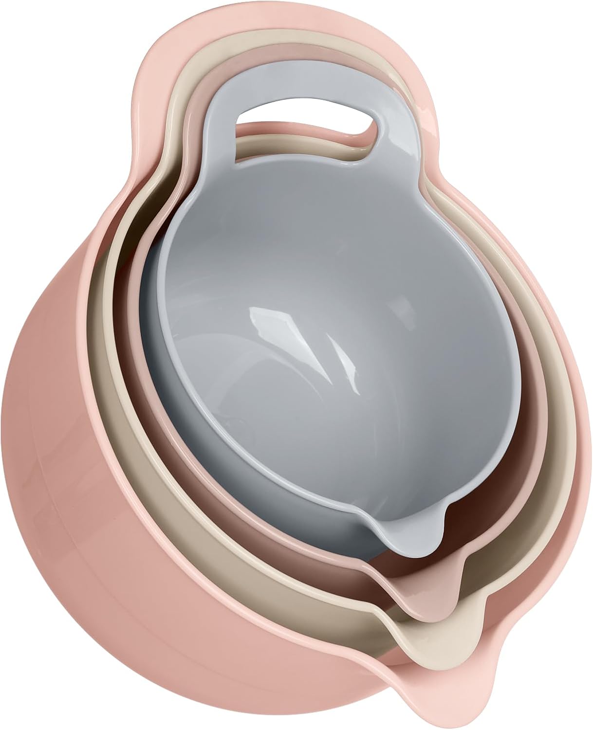 BoxedHome Nesting Plastic Mixing Bowl Set with Pour Spouts and Handles - Non Slip Bottom, BPA free Microwave & Dishwasher Safe(Khaki Pink, 4 Pack)