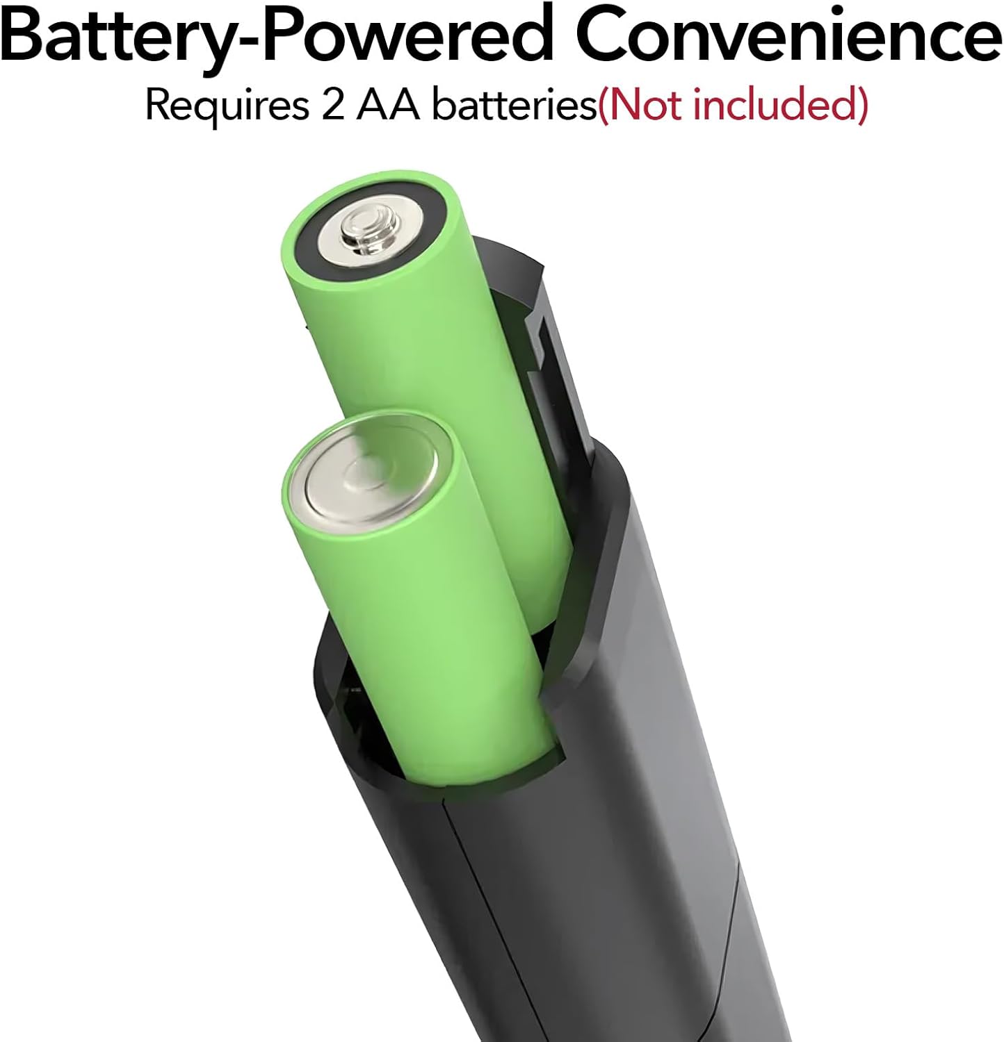 - Battery-Powered Convenience: Runs on 2 AA batteries (not included) for cordless freedom. No more tangled wires or outlet hunting. Quick-change battery compartment